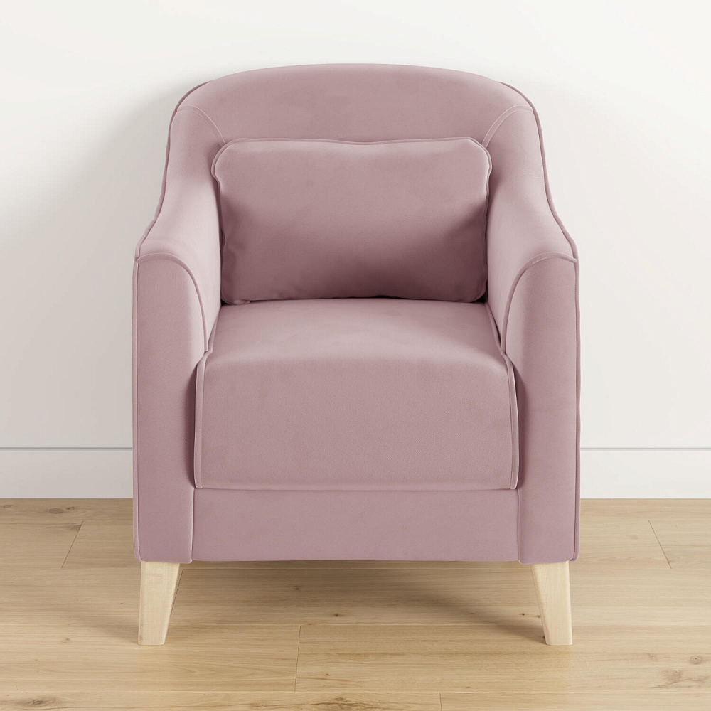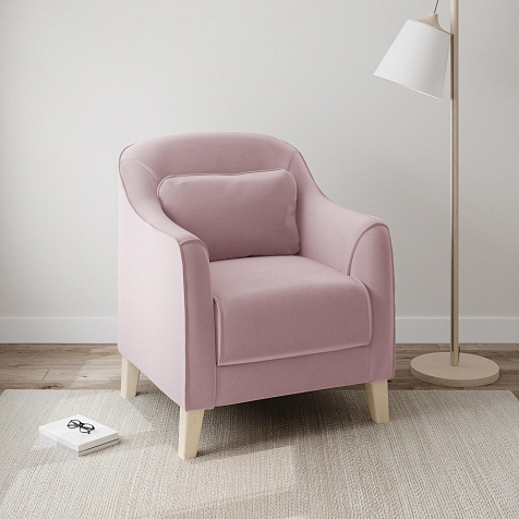 - Деревянные опоры. Высокие ножки из массива березы визуально облегчают конструкцию и открывают доступ к уборке пространства под креслом.