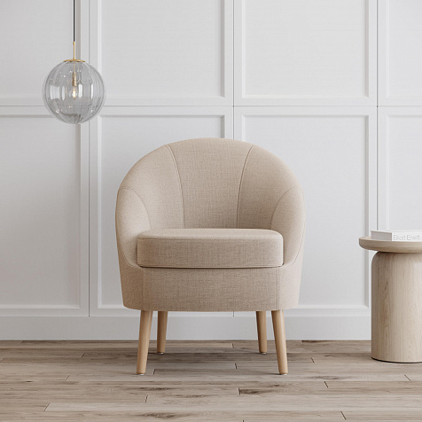 Высокие опоры из натурального дерева визуально облегчают конструкцию и упрощают процесс уборки. Под креслом легко пройдет любой робот-пылесос.