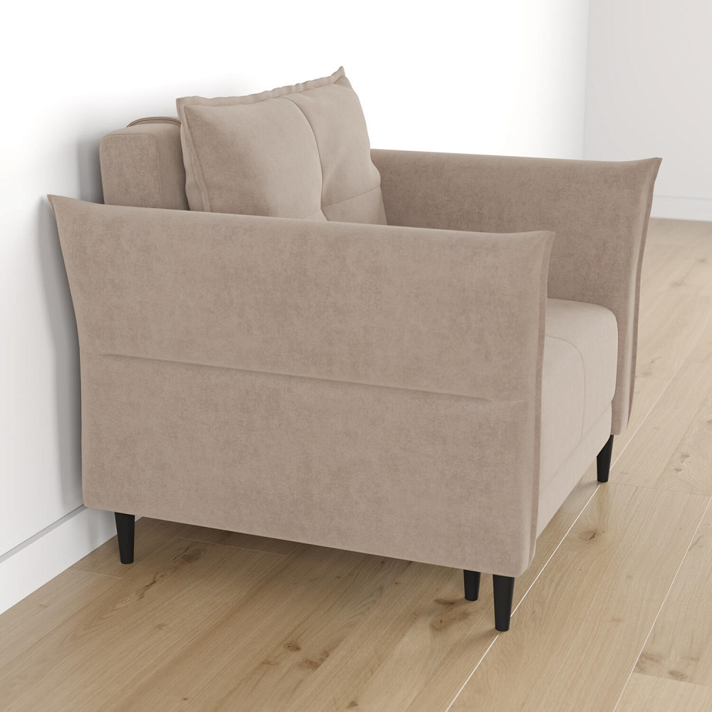 Обивка из велюра. Визуальная схожесть с замшевой текстурой смотрится элегантно. Бархатистая ткань приятная на ощупь, отличается высокой прочностью и устойчивостью к истиранию.