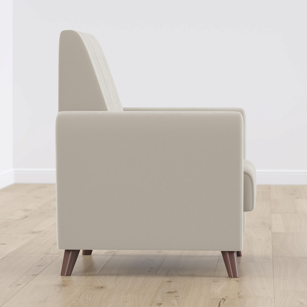 Изящный минимализм в формах кресла «Эссен» позволяет использовать его в различных интерьерных решениях. Элегантные высокие ножки и декоративная строчка на обивке добавляют изысканности.