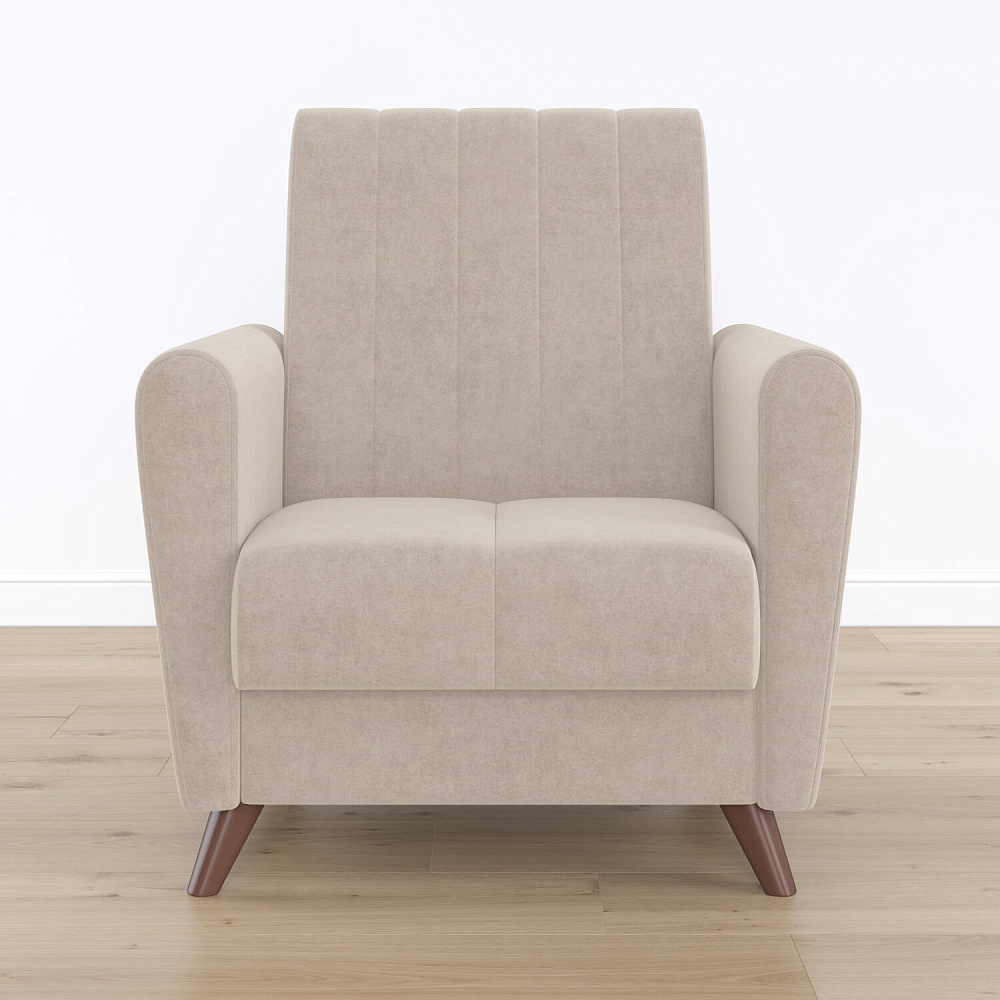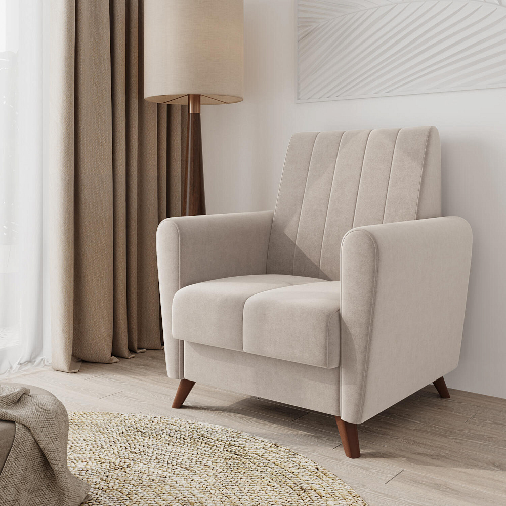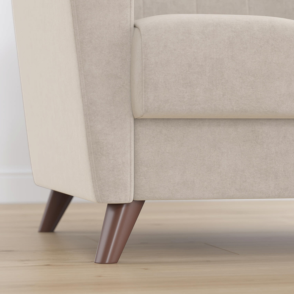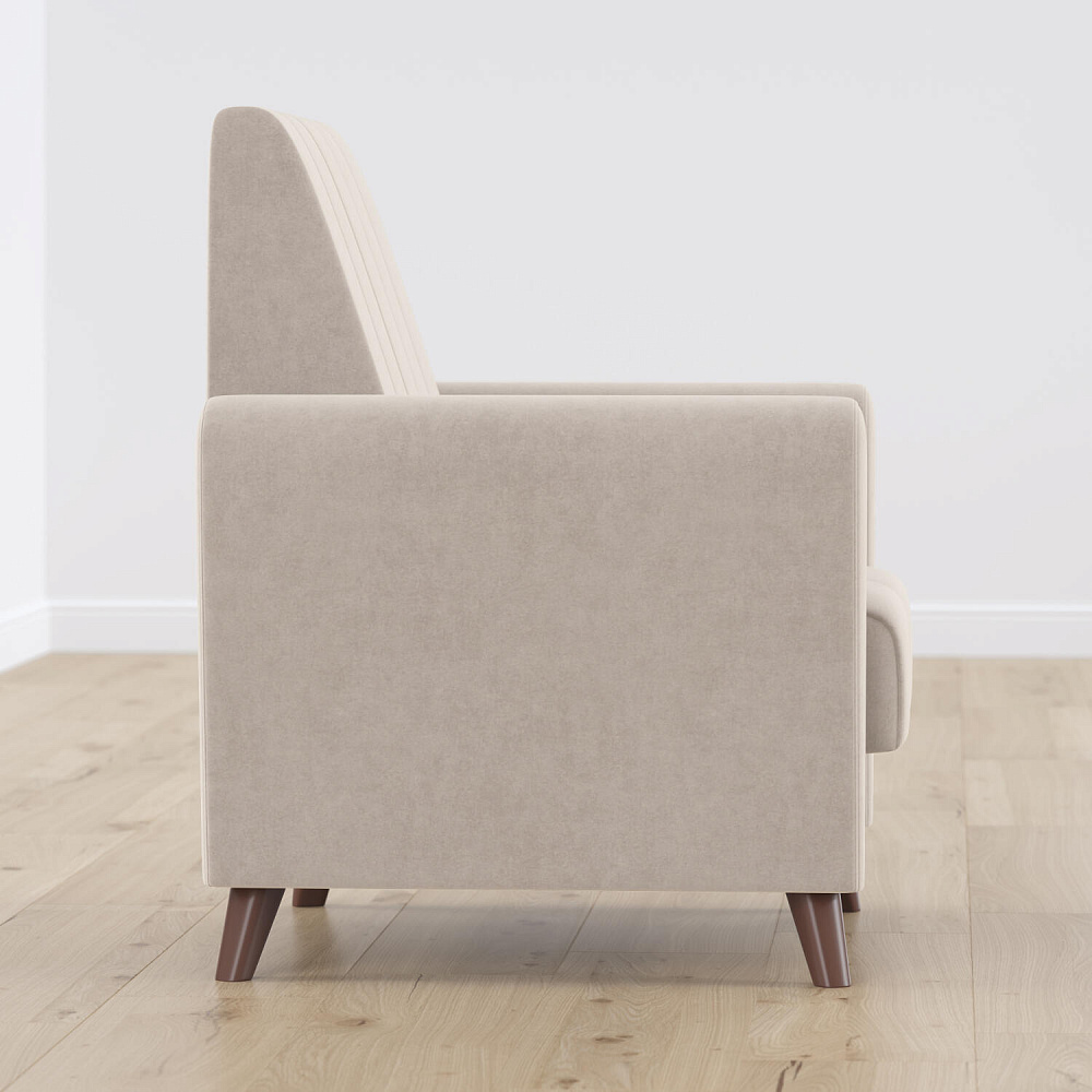 Изящный минимализм в формах кресла «Эссен» позволяет использовать его в различных интерьерных решениях. Элегантные высокие ножки и декоративная строчка на обивке добавляют изысканности.