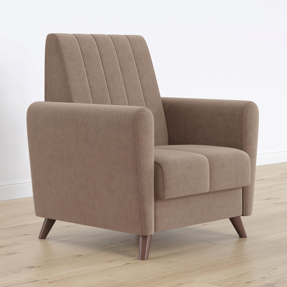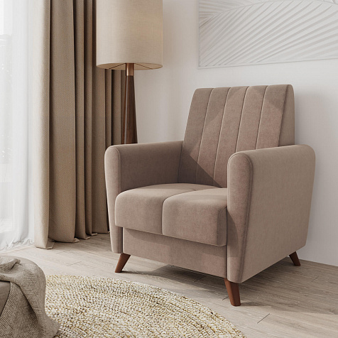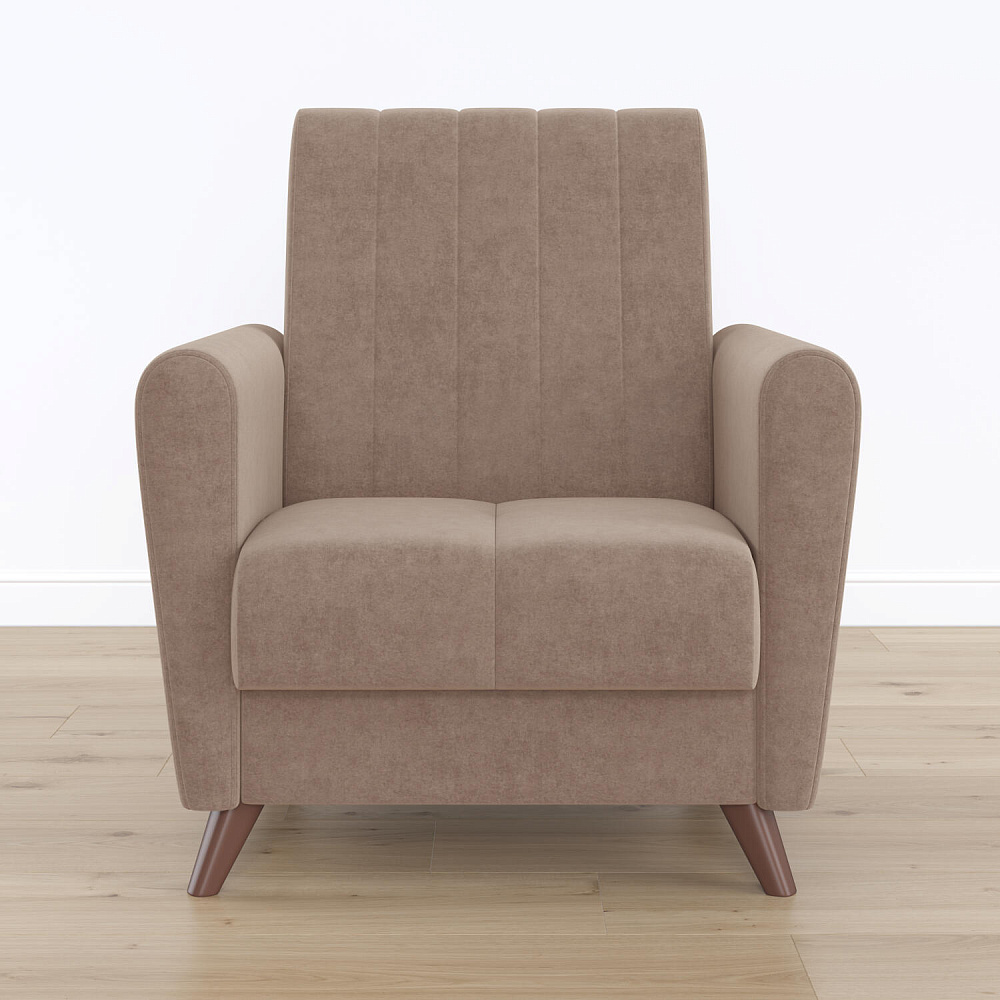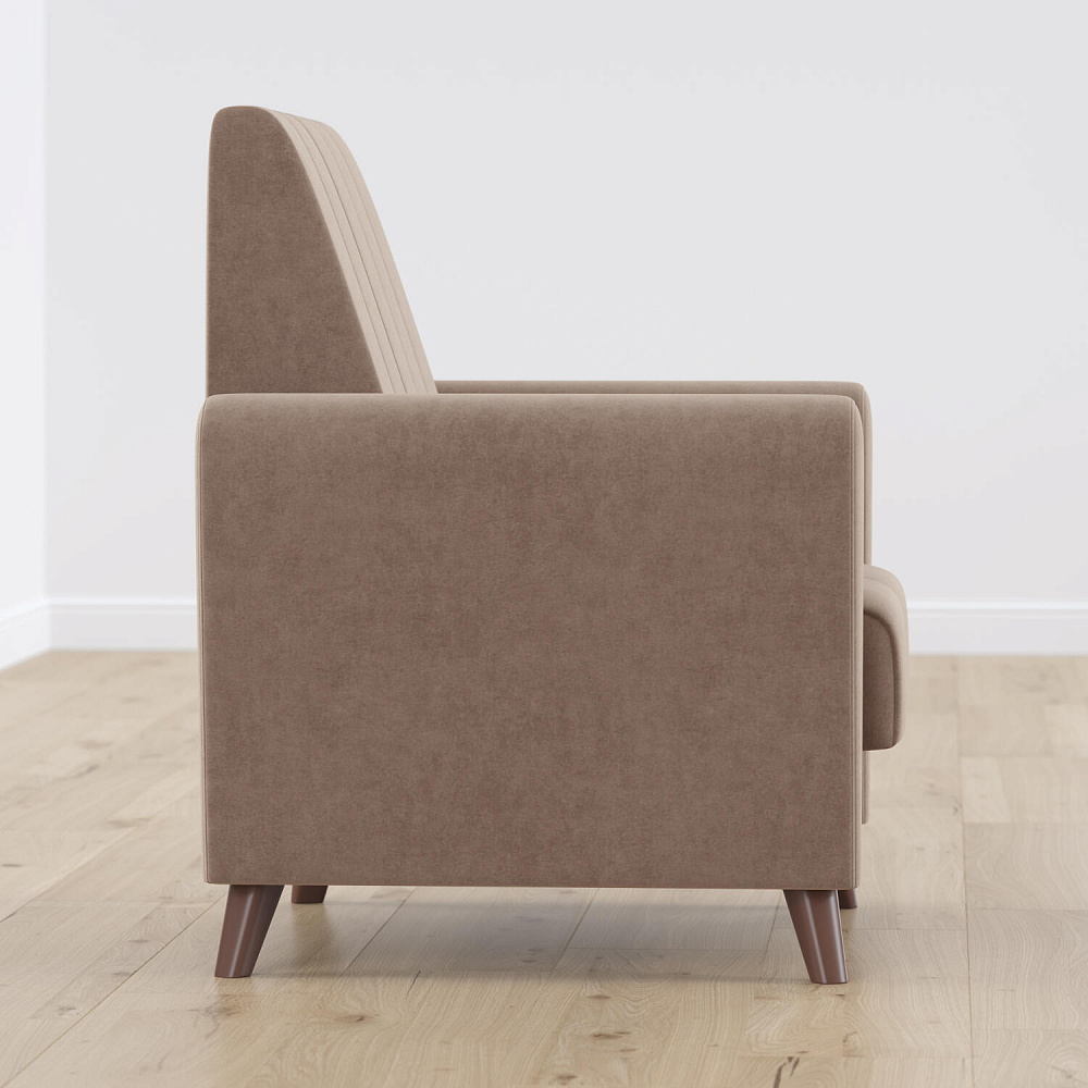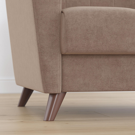 Изящный минимализм в формах кресла «Эссен» позволяет использовать его в различных интерьерных решениях. Элегантные высокие ножки и декоративная строчка на обивке добавляют изысканности.