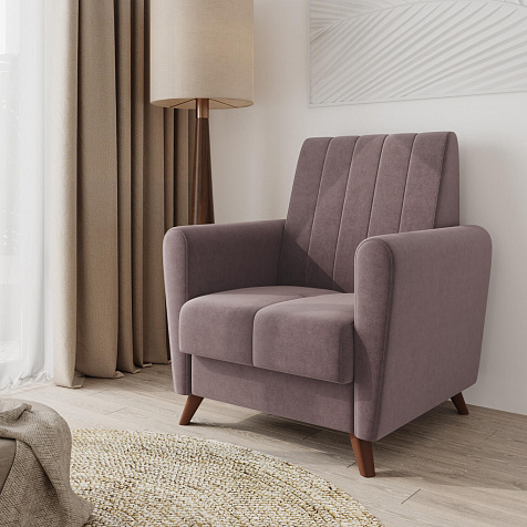 Изящный минимализм в формах кресла «Эссен» позволяет использовать его в различных интерьерных решениях. Элегантные высокие ножки и декоративная строчка на обивке добавляют изысканности.