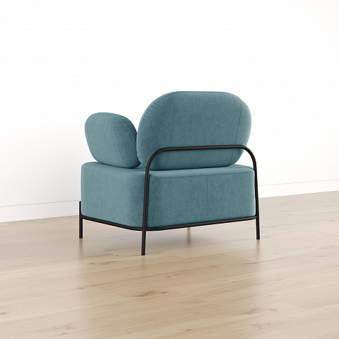 Зонирование пространства. Обратная сторона спинки выполнена в обивочной ткани. Кресло можно разместить как вплотную к стене, так и в центре комнаты, разделяя ее на разные зоны.