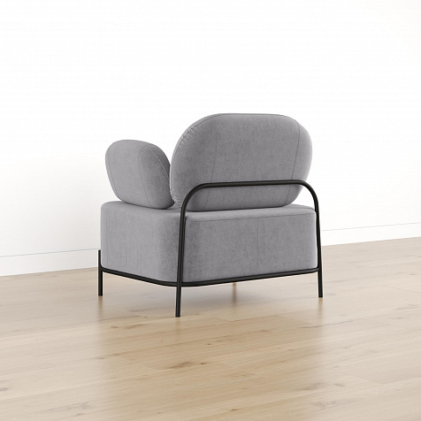 Зонирование пространства. Обратная сторона спинки выполнена в обивочной ткани. Кресло можно разместить как вплотную к стене, так и в центре комнаты, разделяя ее на разные зоны.