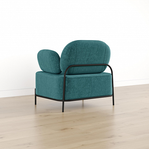 Зонирование пространства. Обратная сторона спинки выполнена в обивочной ткани. Кресло можно разместить как вплотную к стене, так и в центре комнаты, разделяя ее на разные зоны.