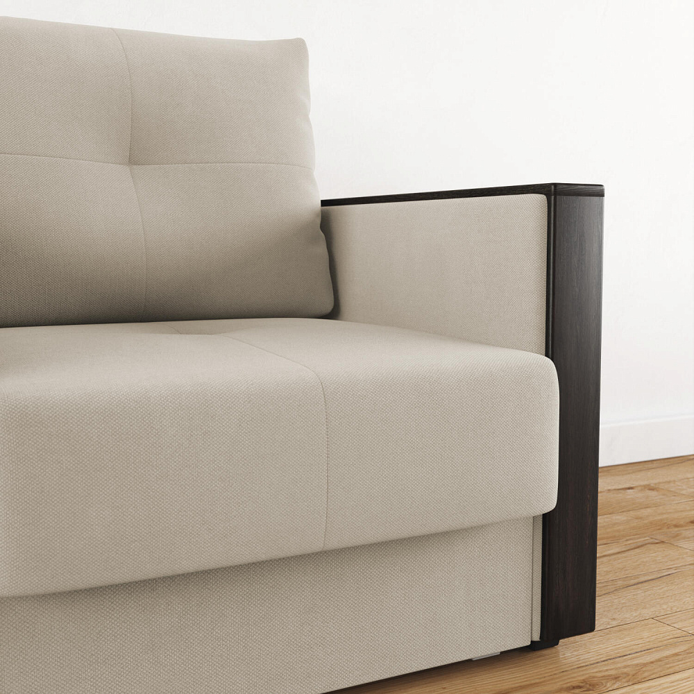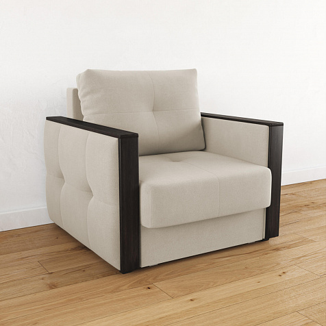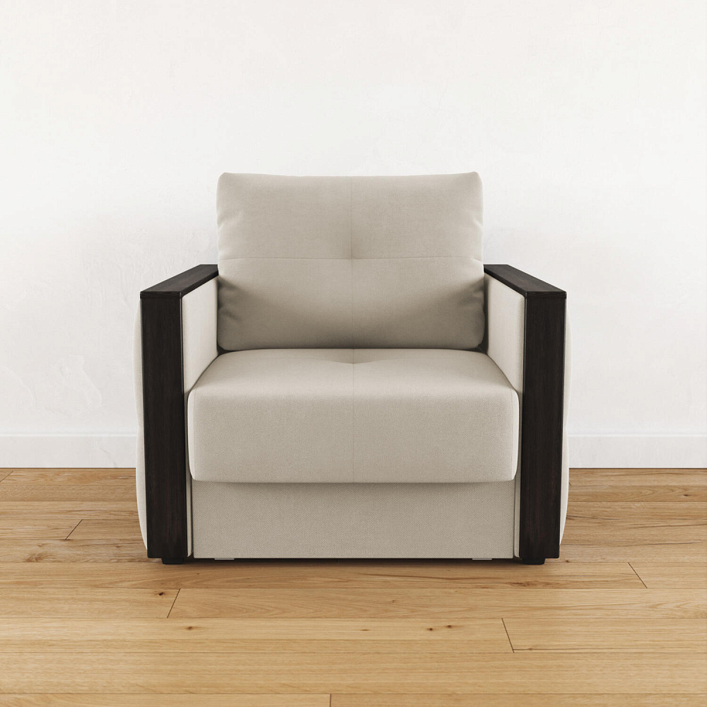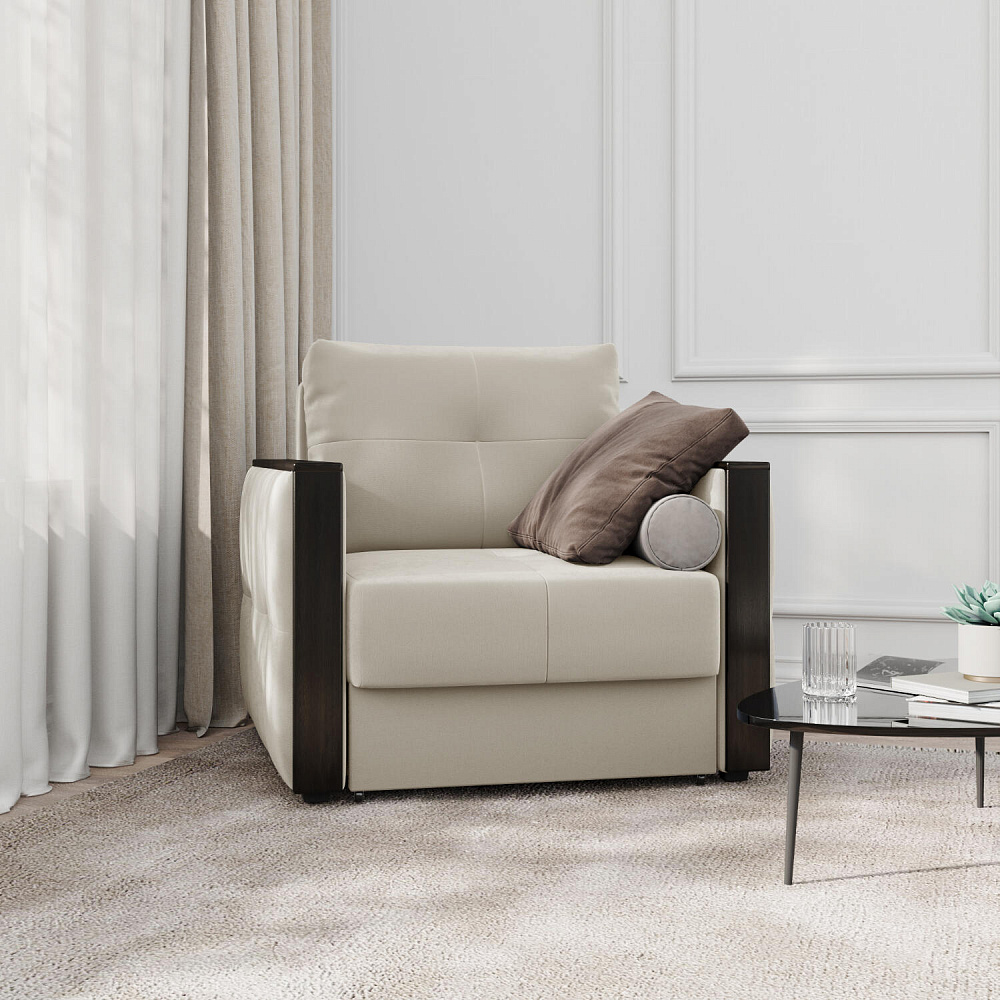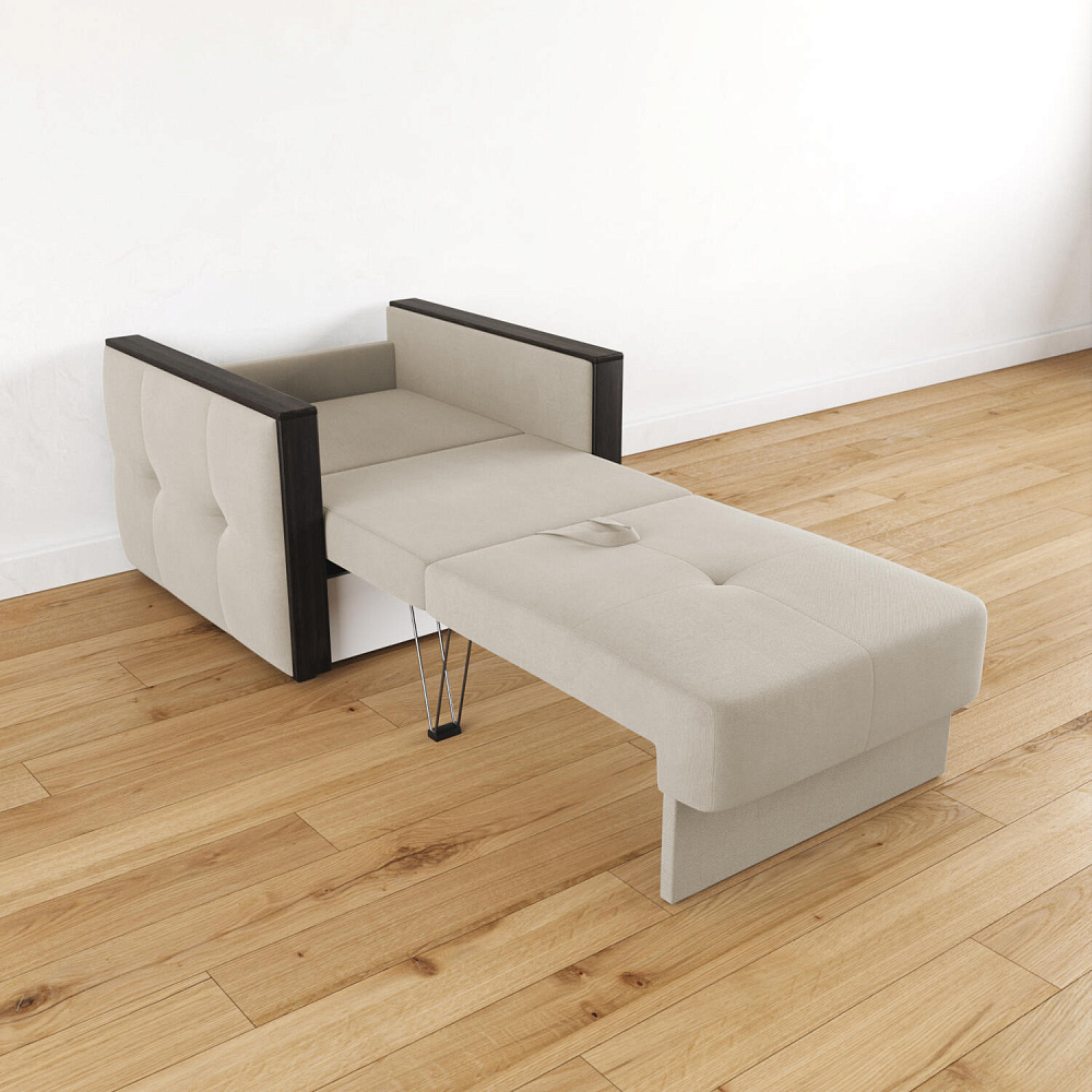 Стильное кресло «Винг» объединяет строгие геометрические формы и максимальный комфорт. Прямые подлокотники можно использовать в качестве мини-столешницы для небольших предметов. Кресло сочетает в себе полноценное односпальное место, которое экономит пространство за счет особенности раскладного механизма «Еврокнижка».