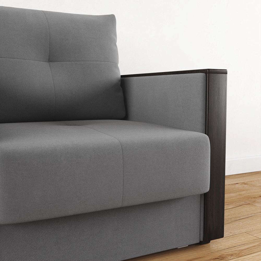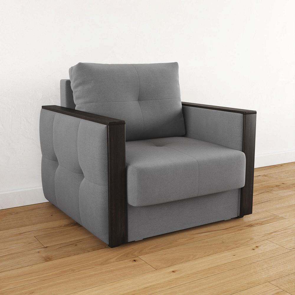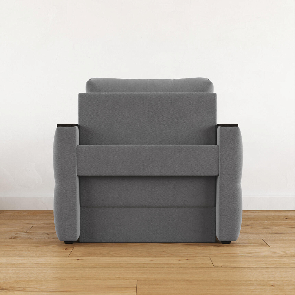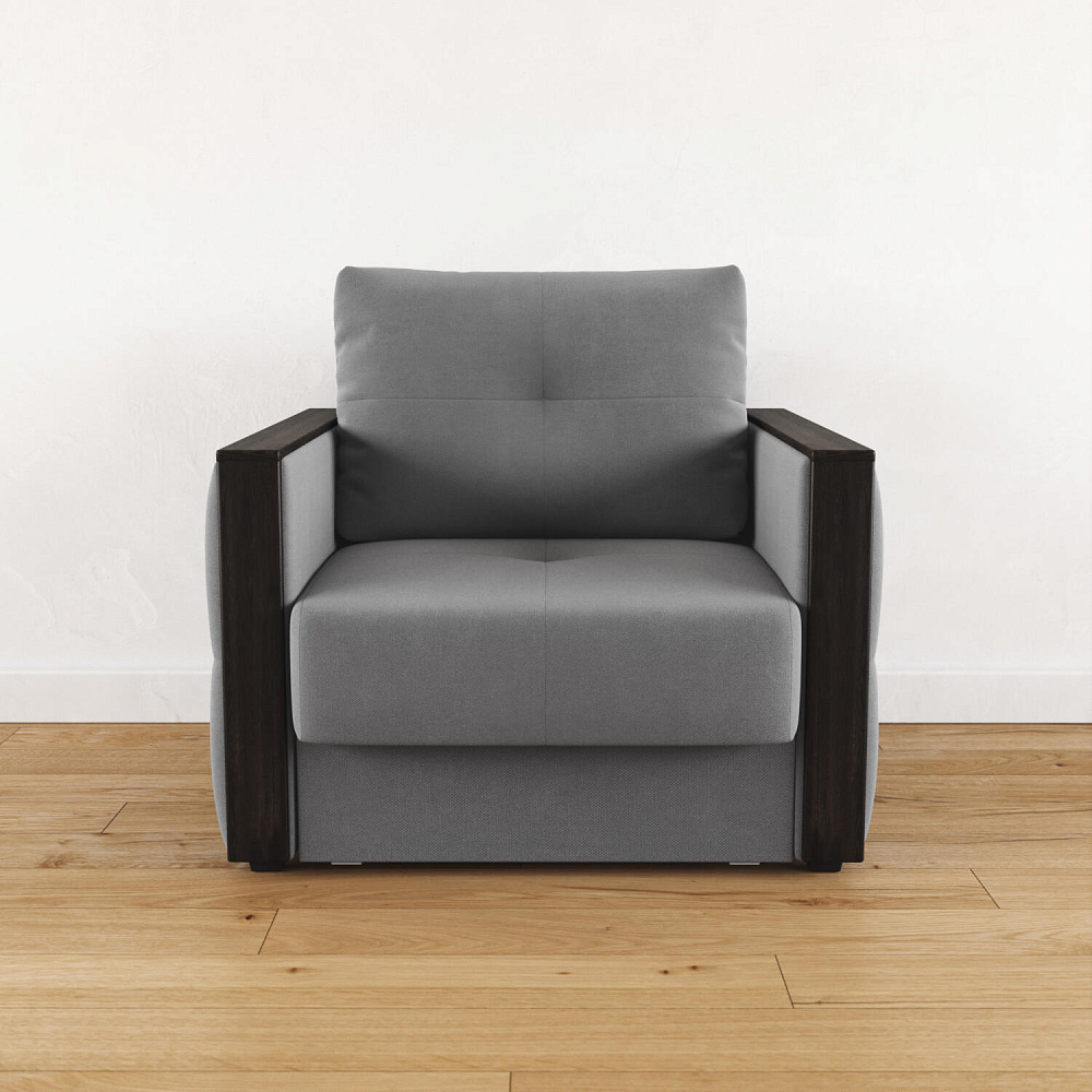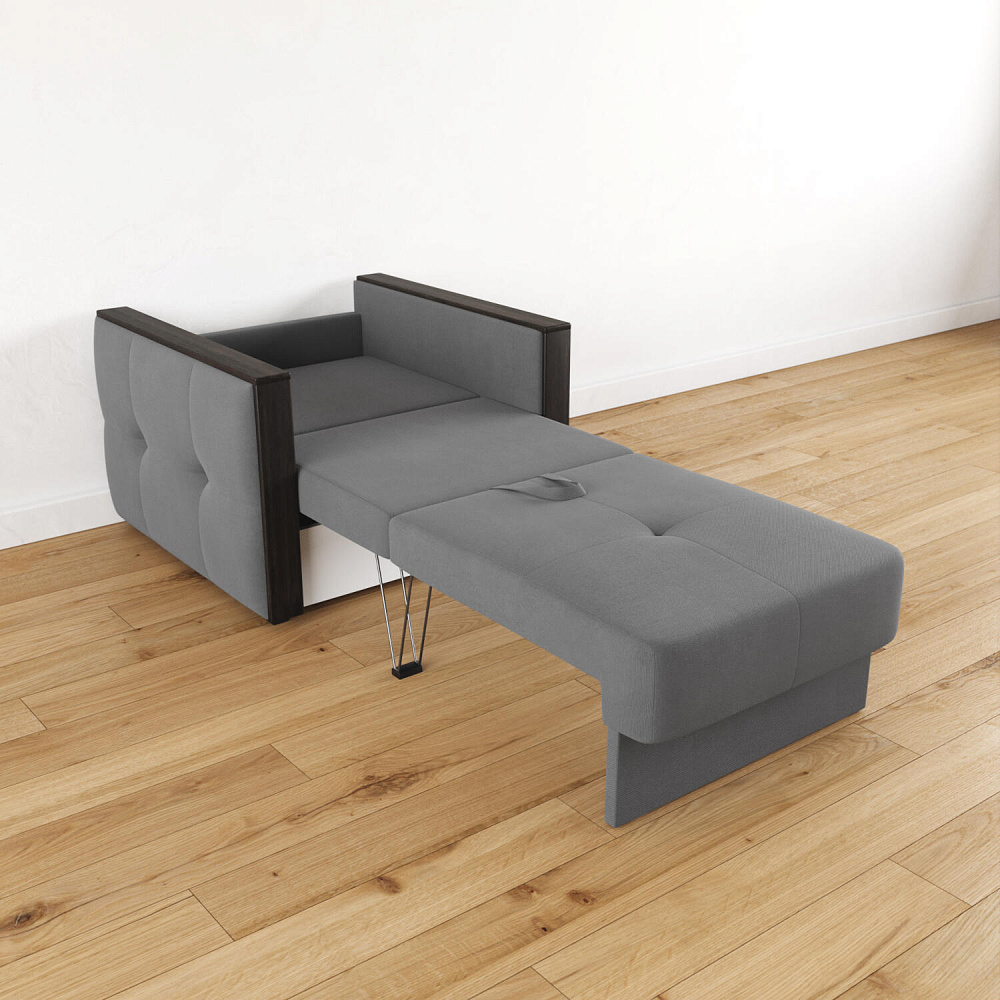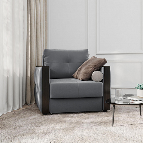 Стильное кресло «Винг» объединяет строгие геометрические формы и максимальный комфорт. Прямые подлокотники можно использовать в качестве мини-столешницы для небольших предметов. Кресло сочетает в себе полноценное односпальное место, которое экономит пространство за счет особенности раскладного механизма «Еврокнижка».