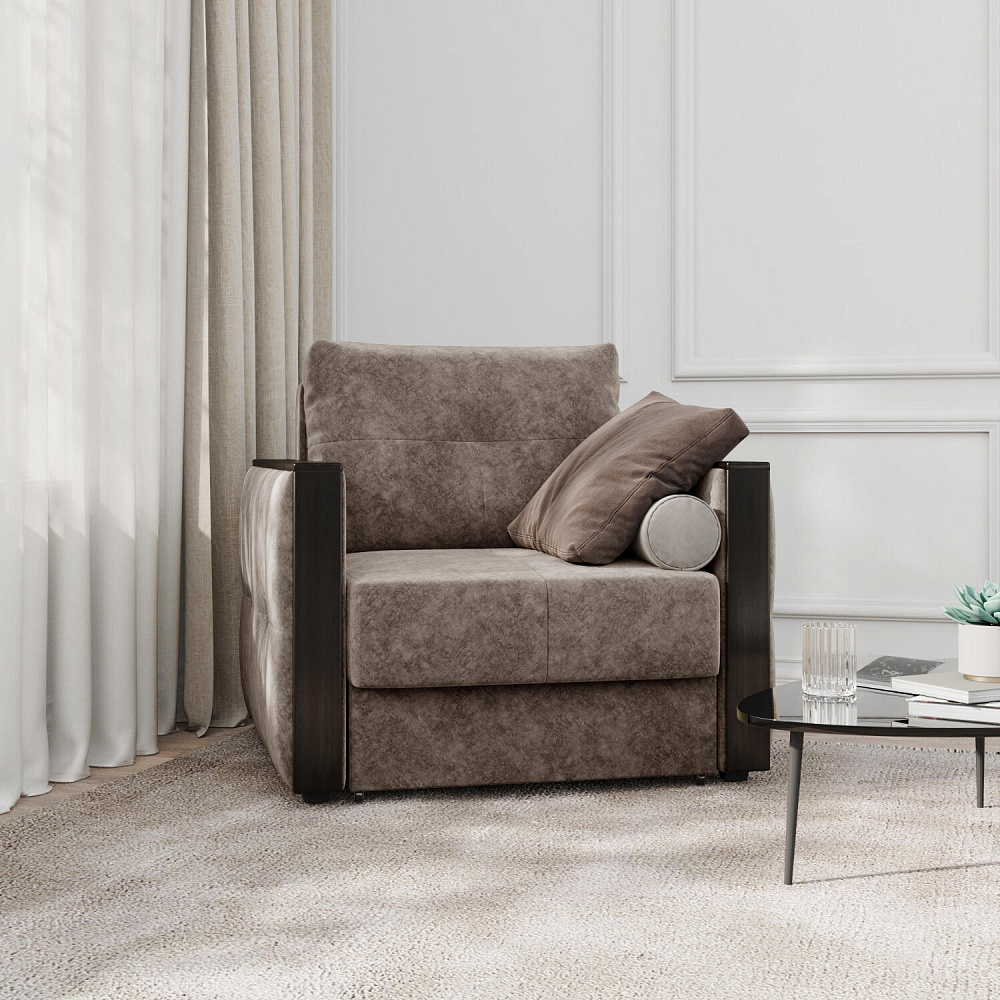 Стильное кресло «Винг» объединяет строгие геометрические формы и максимальный комфорт. Прямые подлокотники можно использовать в качестве мини-столешницы для небольших предметов. Кресло сочетает в себе полноценное односпальное место, которое экономит пространство за счет особенности раскладного механизма «Еврокнижка».