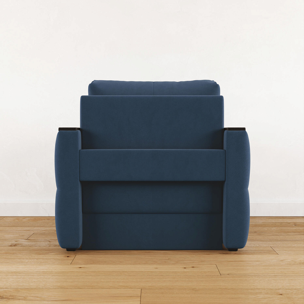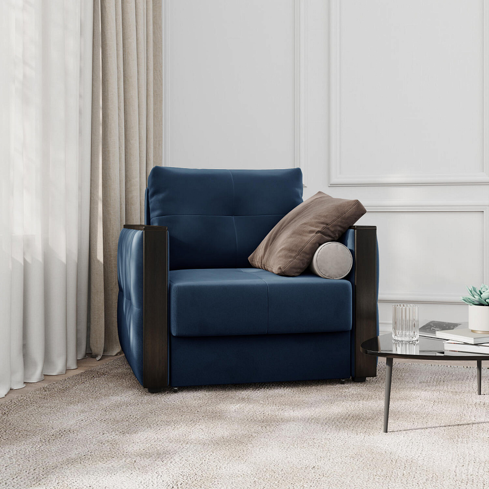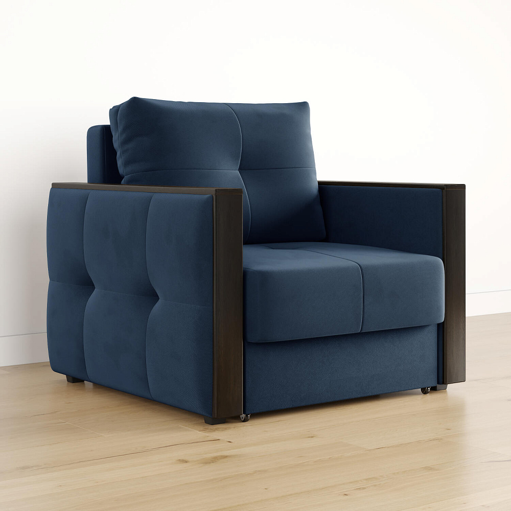 Стильное кресло «Винг» объединяет строгие геометрические формы и максимальный комфорт. Прямые подлокотники можно использовать в качестве мини-столешницы для небольших предметов. Кресло сочетает в себе полноценное односпальное место, которое экономит пространство за счет особенности раскладного механизма «Еврокнижка».