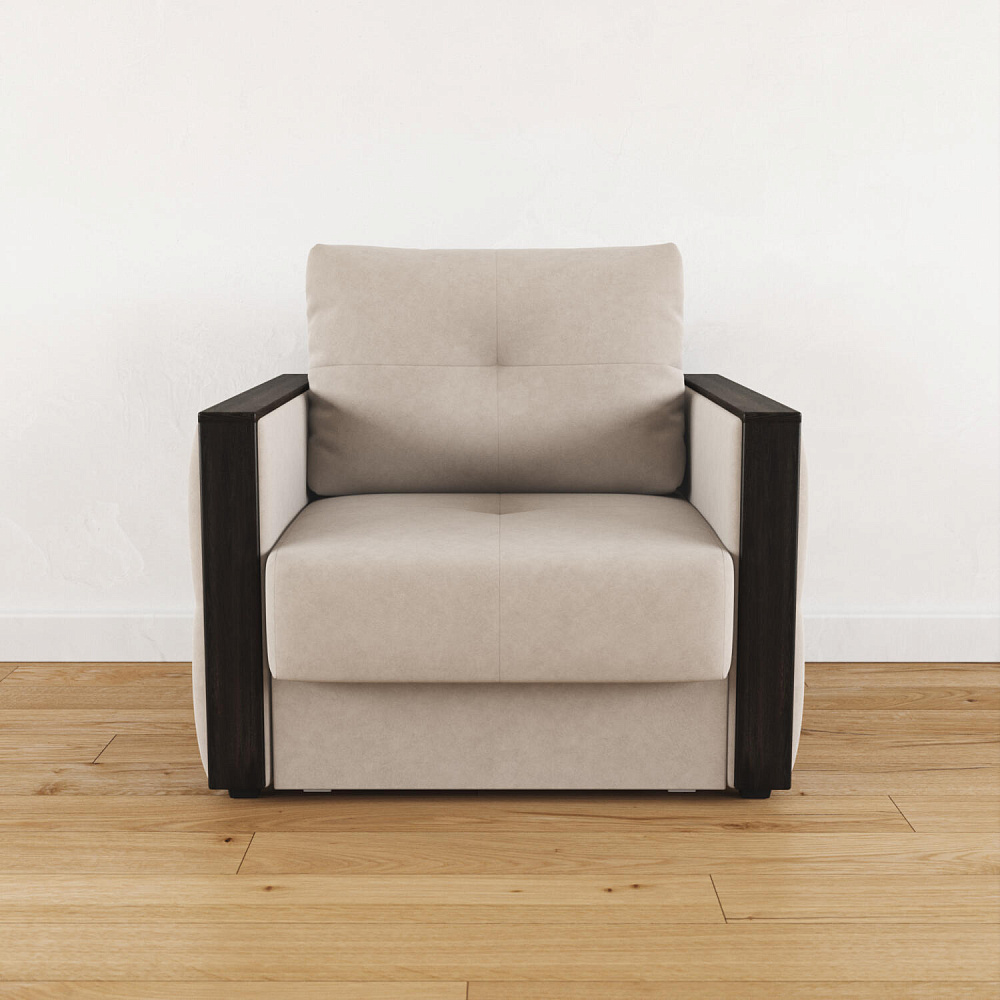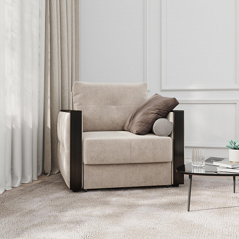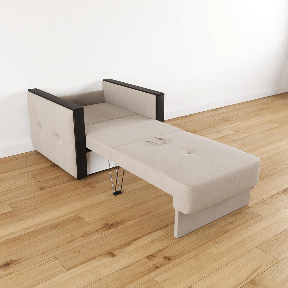 Стильное кресло «Винг» объединяет строгие геометрические формы и максимальный комфорт. Прямые подлокотники можно использовать в качестве мини-столешницы для небольших предметов. Кресло сочетает в себе полноценное односпальное место, которое экономит пространство за счет особенности раскладного механизма «Еврокнижка».