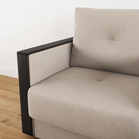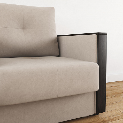 Обивка из велюра. Визуально схожесть с замшевой текстурой смотрится элегантно. Ткань приятная на ощупь, устойчива к истиранию и механическим повреждениям.
