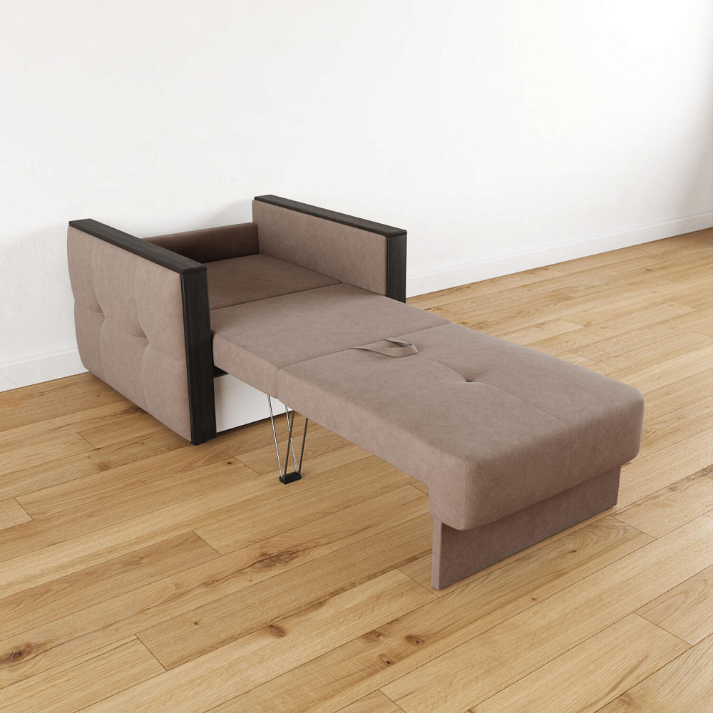 Стильное кресло «Винг» объединяет строгие геометрические формы и максимальный комфорт. Прямые подлокотники можно использовать в качестве мини-столешницы для небольших предметов. Кресло сочетает в себе полноценное односпальное место, которое экономит пространство за счет особенности раскладного механизма «Еврокнижка».