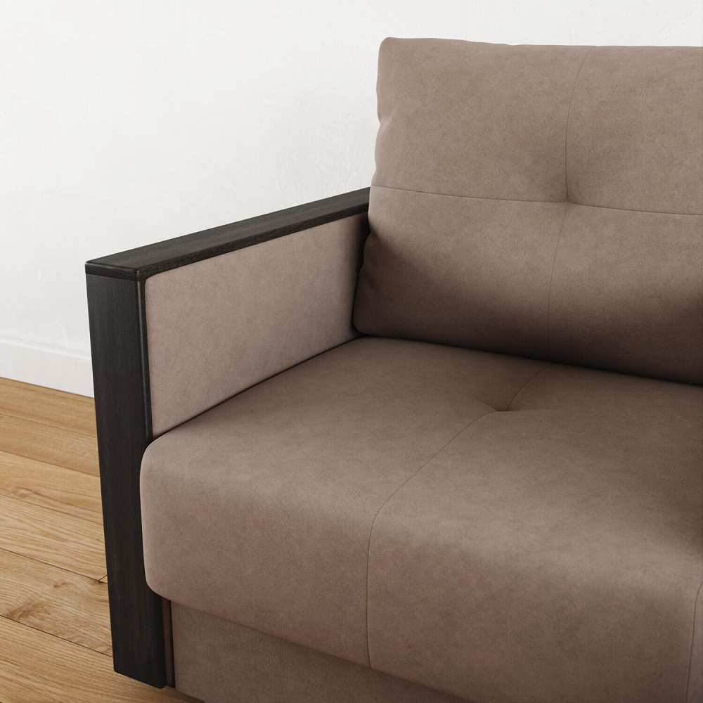 Обивка из велюра. Визуально схожесть с замшевой текстурой смотрится элегантно. Ткань приятная на ощупь, устойчива к истиранию и механическим повреждениям.