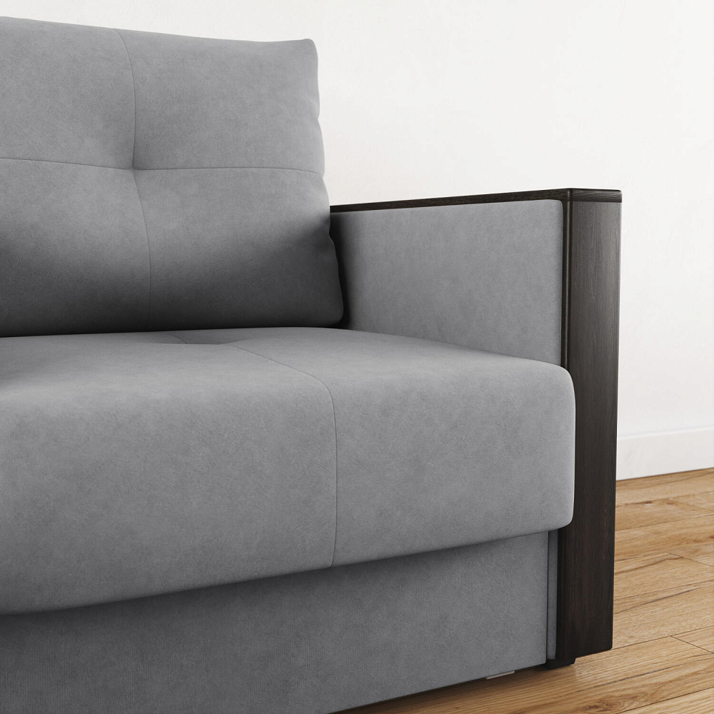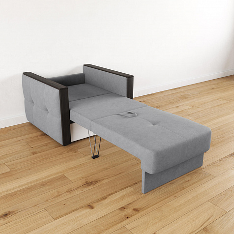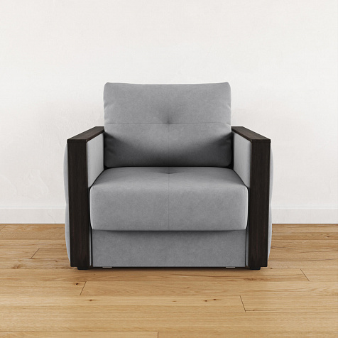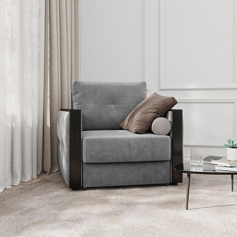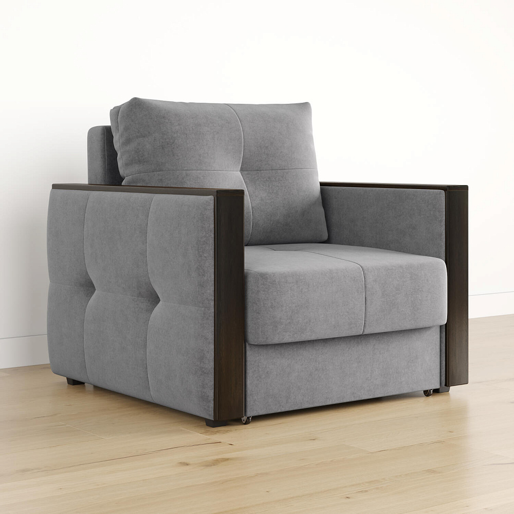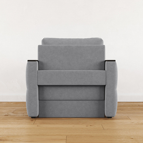 Стильное кресло «Винг» объединяет строгие геометрические формы и максимальный комфорт. Прямые подлокотники можно использовать в качестве мини-столешницы для небольших предметов. Кресло сочетает в себе полноценное односпальное место, которое экономит пространство за счет особенности раскладного механизма «Еврокнижка».