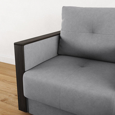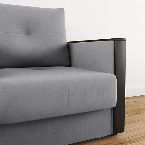 Обивка из велюра. Визуально схожесть с замшевой текстурой смотрится элегантно. Ткань приятная на ощупь, устойчива к истиранию и механическим повреждениям.