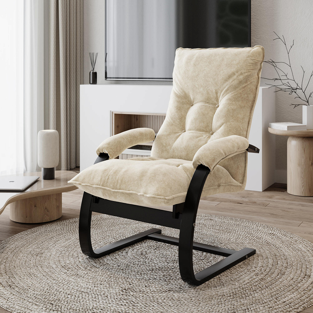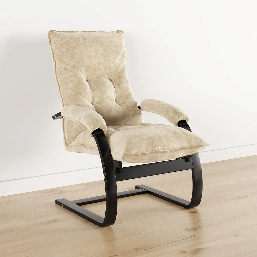 Мягкое кресло «Бари» поможет создать уютный уголок для расслабления как в квартире, так и в загородном доме. Лаконичный дизайн модели отличается изогнутыми опорами и декоративными утяжками на спинке. Обивка выполнена из приятного на ощупь велюра. Кресло можно откинуть для более комфортного отдыха. Благодаря фанерному каркасу кресло приятно пружинит и в то же время выдерживает большие нагрузки.
