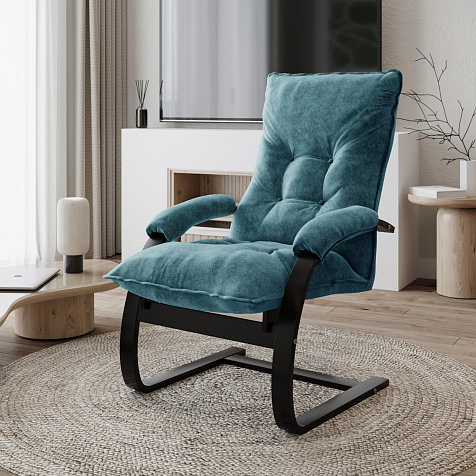 Мягкое кресло «Бари» поможет создать уютный уголок для расслабления как в квартире, так и в загородном доме. Лаконичный дизайн модели отличается изогнутыми опорами и декоративными утяжками на спинке. Обивка выполнена из приятного на ощупь велюра. Кресло можно откинуть для более комфортного отдыха. Благодаря фанерному каркасу кресло приятно пружинит и в то же время выдерживает большие нагрузки.