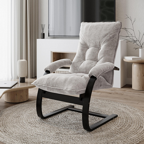 Мягкое кресло «Бари» поможет создать уютный уголок для расслабления как в квартире, так и в загородном доме. Лаконичный дизайн модели отличается изогнутыми опорами и декоративными утяжками на спинке. Обивка выполнена из приятного на ощупь велюра. Кресло можно откинуть для более комфортного отдыха. Благодаря фанерному каркасу кресло приятно пружинит и в то же время выдерживает большие нагрузки.