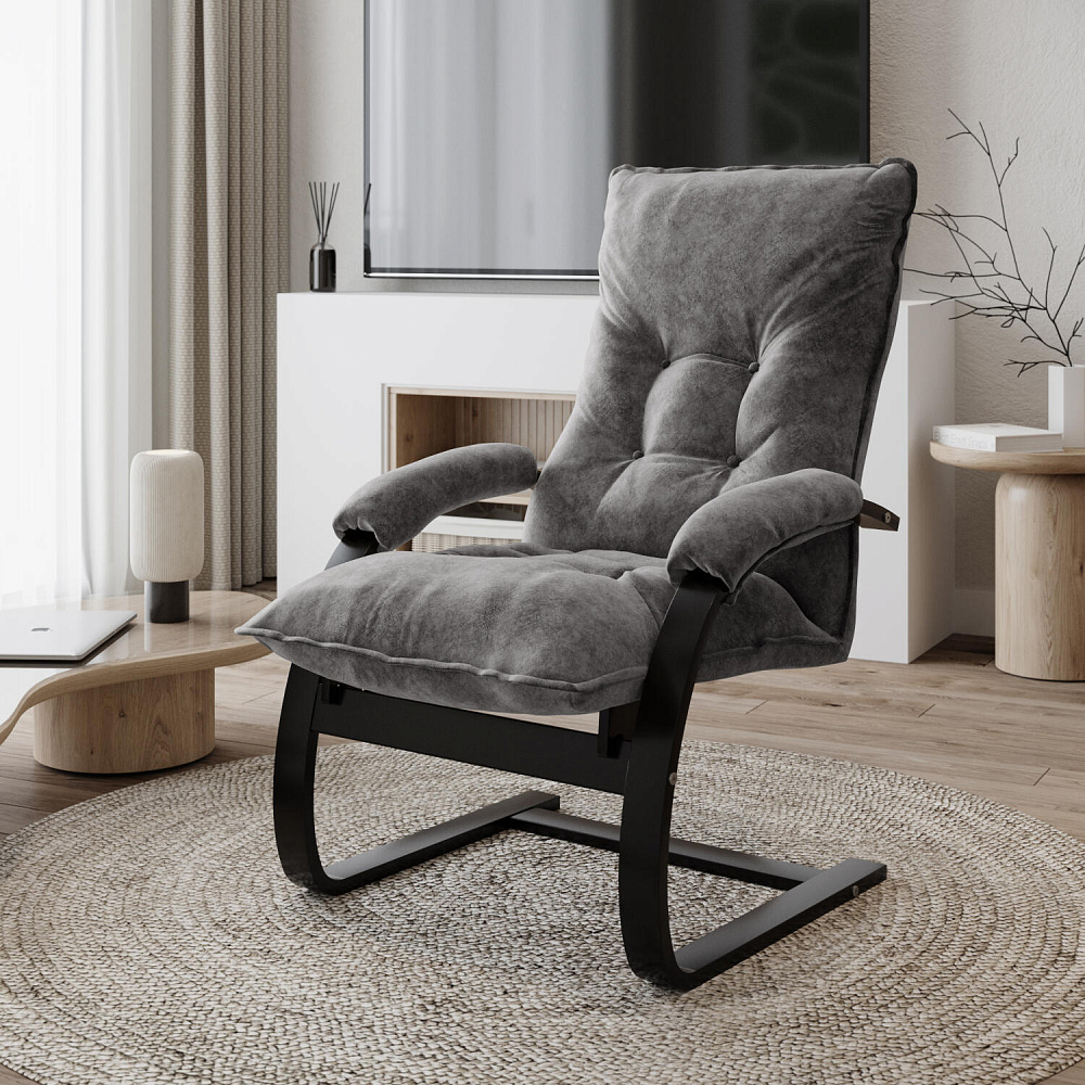 Минималистичный дизайн. Округлые формы кресла в сочетании с ненавязчивой стежкой на спинке создают спокойный образ, что подойдет для любого современного интерьера спальни или гостиной.