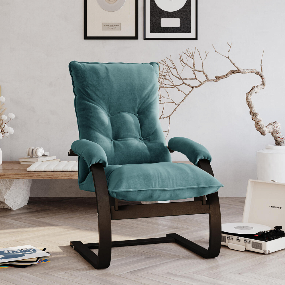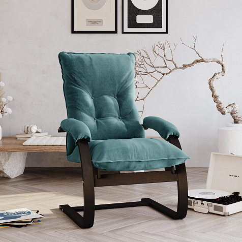 Мягкое кресло «Бари» поможет создать уютный уголок для расслабления как в квартире, так и в загородном доме. Лаконичный дизайн модели отличается изогнутыми опорами и декоративными утяжками на спинке. Обивка выполнена из приятного на ощупь велюра. Кресло можно откинуть для более комфортного отдыха. Благодаря фанерному каркасу кресло приятно пружинит и в то же время выдерживает большие нагрузки.
