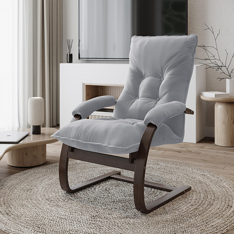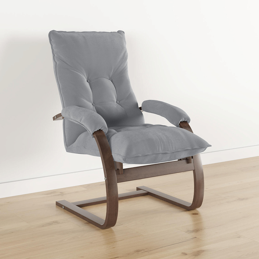 Мягкое кресло «Бари» поможет создать уютный уголок для расслабления как в квартире, так и в загородном доме. Лаконичный дизайн модели отличается изогнутыми опорами и декоративными утяжками на спинке. Обивка выполнена из приятного на ощупь велюра. Кресло можно откинуть для более комфортного отдыха. Благодаря фанерному каркасу кресло приятно пружинит и в то же время выдерживает большие нагрузки.