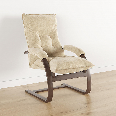 Мягкое кресло «Бари» поможет создать уютный уголок для расслабления как в квартире, так и в загородном доме. Лаконичный дизайн модели отличается изогнутыми опорами и декоративными утяжками на спинке. Обивка выполнена из приятного на ощупь велюра. Кресло можно откинуть для более комфортного отдыха. Благодаря фанерному каркасу кресло приятно пружинит и в то же время выдерживает большие нагрузки.