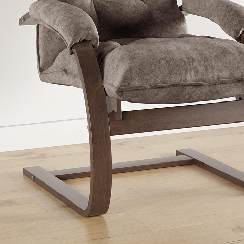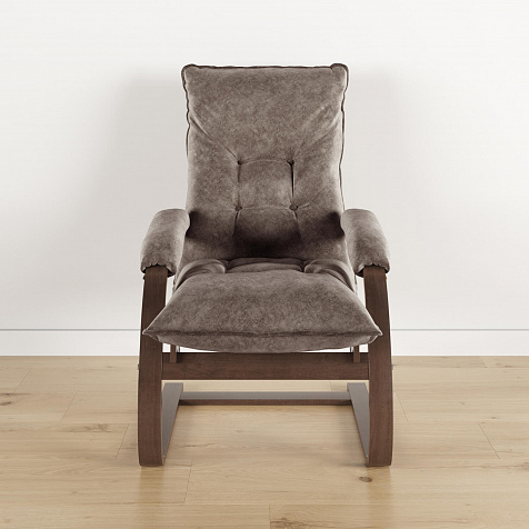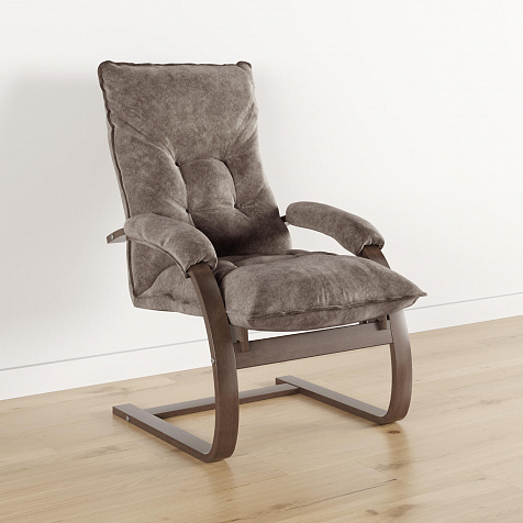 Мягкое кресло «Бари» поможет создать уютный уголок для расслабления как в квартире, так и в загородном доме. Лаконичный дизайн модели отличается изогнутыми опорами и декоративными утяжками на спинке. Обивка выполнена из приятного на ощупь велюра. Кресло можно откинуть для более комфортного отдыха. Благодаря фанерному каркасу кресло приятно пружинит и в то же время выдерживает большие нагрузки.