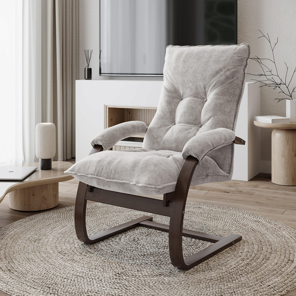 Мягкое кресло «Бари» поможет создать уютный уголок для расслабления как в квартире, так и в загородном доме. Лаконичный дизайн модели отличается изогнутыми опорами и декоративными утяжками на спинке. Обивка выполнена из приятного на ощупь велюра. Кресло можно откинуть для более комфортного отдыха. Благодаря фанерному каркасу кресло приятно пружинит и в то же время выдерживает большие нагрузки.