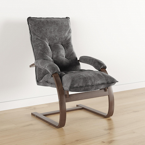 Мягкое кресло «Бари» поможет создать уютный уголок для расслабления как в квартире, так и в загородном доме. Лаконичный дизайн модели отличается изогнутыми опорами и декоративными утяжками на спинке. Обивка выполнена из приятного на ощупь велюра. Кресло можно откинуть для более комфортного отдыха. Благодаря фанерному каркасу кресло приятно пружинит и в то же время выдерживает большие нагрузки.