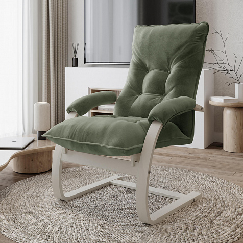 Мягкое кресло «Бари» поможет создать уютный уголок для расслабления как в квартире, так и в загородном доме. Лаконичный дизайн модели отличается изогнутыми опорами и декоративными утяжками на спинке. Обивка выполнена из приятного на ощупь велюра. Кресло можно откинуть для более комфортного отдыха. Благодаря фанерному каркасу кресло приятно пружинит и в то же время выдерживает большие нагрузки.