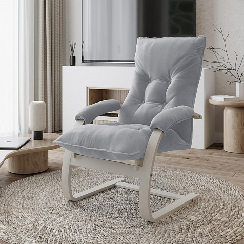 Минималистичный дизайн. Округлые формы кресла в сочетании с ненавязчивой стежкой на спинке создают спокойный образ, что подойдет для любого современного интерьера спальни или гостиной.