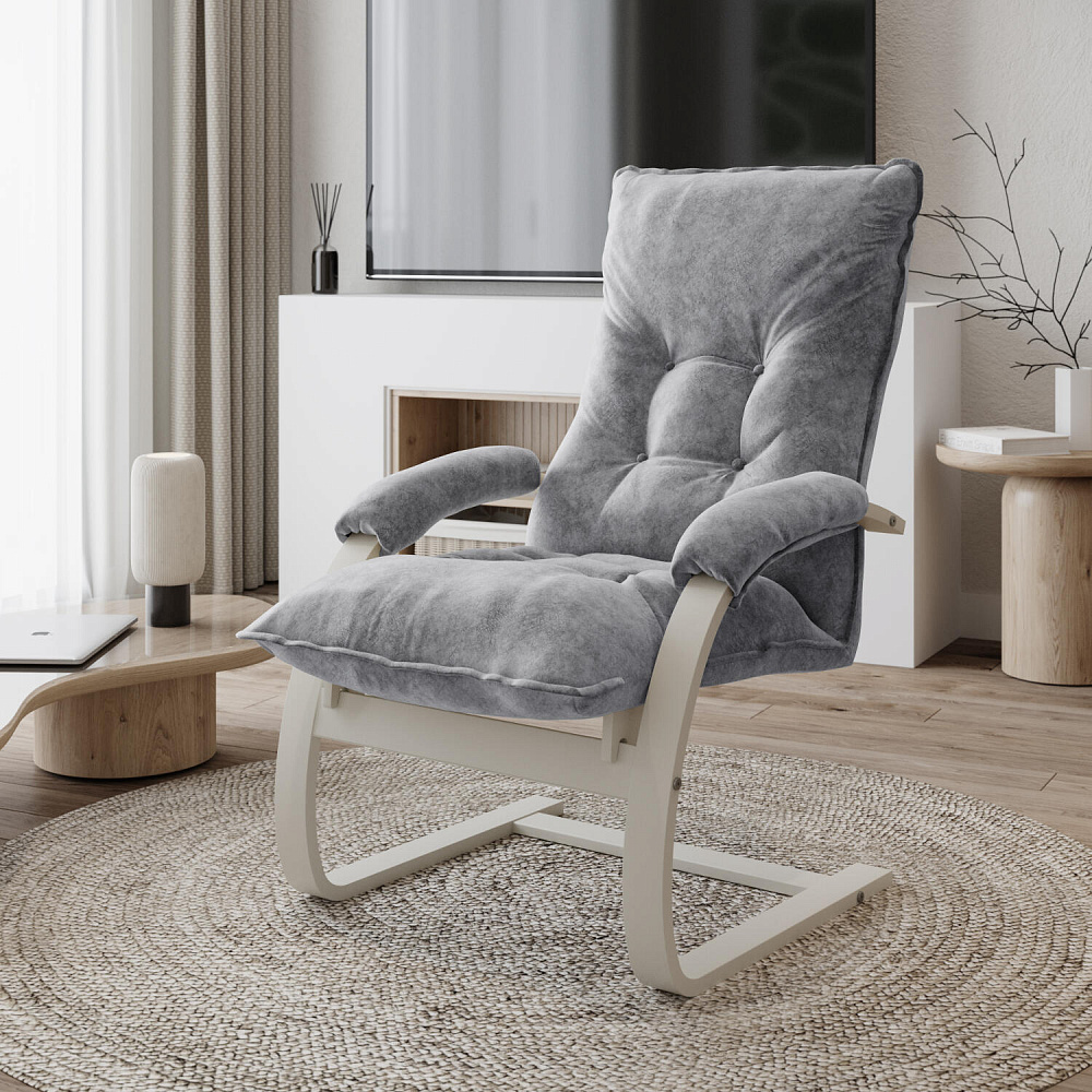 Минималистичный дизайн. Округлые формы кресла в сочетании с ненавязчивой стежкой на спинке создают спокойный образ, что подойдет для любого современного интерьера спальни или гостиной.