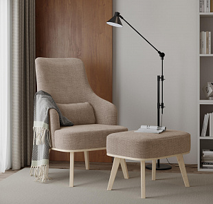 Деревянные опоры. Высокие ножки из массива березы визуально облегчают конструкцию, открывают доступ к уборке пространства под креслом.