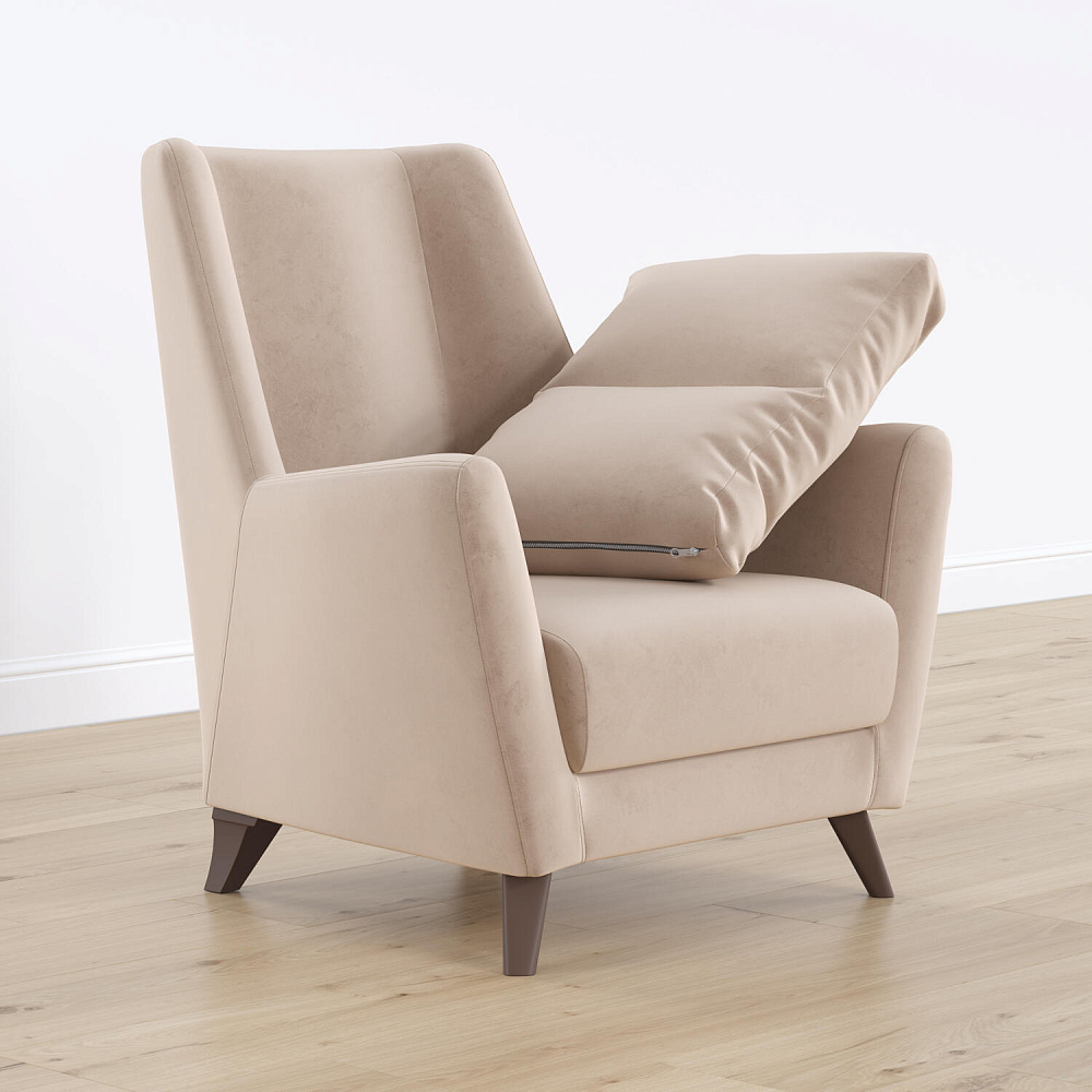 Высокие опоры. Визуально облегчают конструкцию и открывают доступ к уборке пространства под креслом.