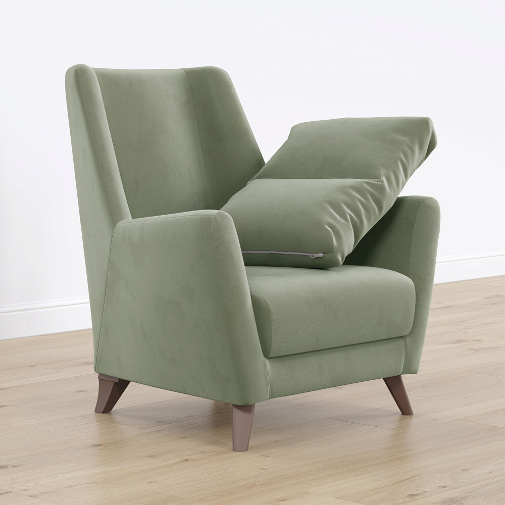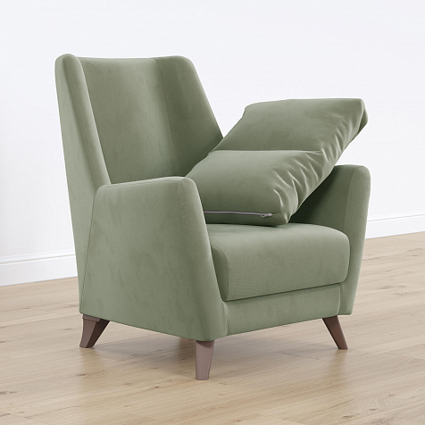 Обивка из велюра. Плотная и приятная на ощупь ткань устойчива к влаге и имеет необычную текстуру. Тонкие фактурные диагональные линии смотрятся эффектно. Смягчают привычные геометрические акценты.