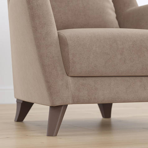 Обивка из велюра. Визуальная схожесть с замшевой текстурой смотрится элегантно. Бархатистая ткань приятная на ощупь, отличается высокой прочностью и устойчивостью к истиранию.