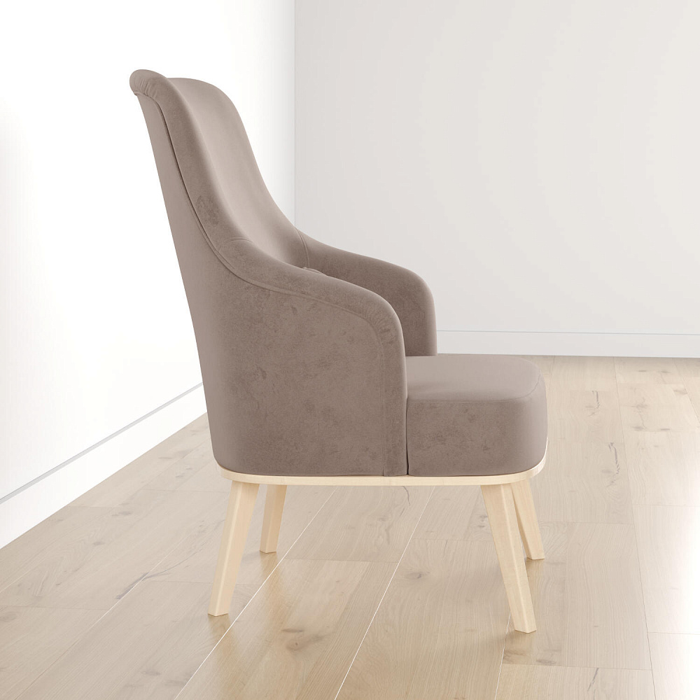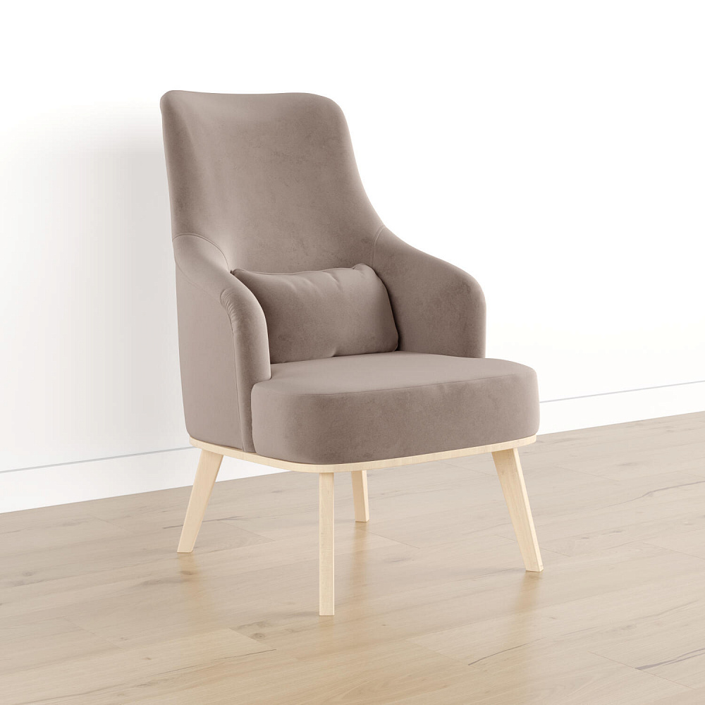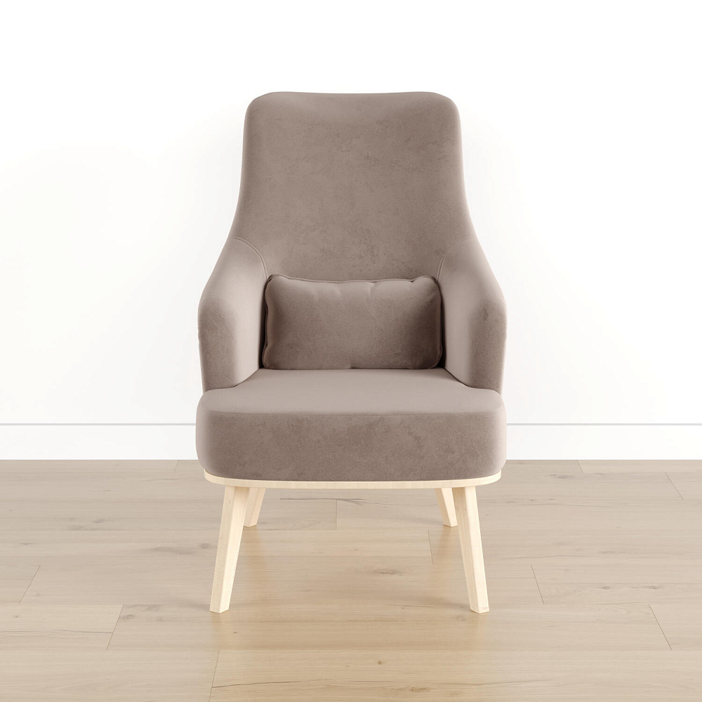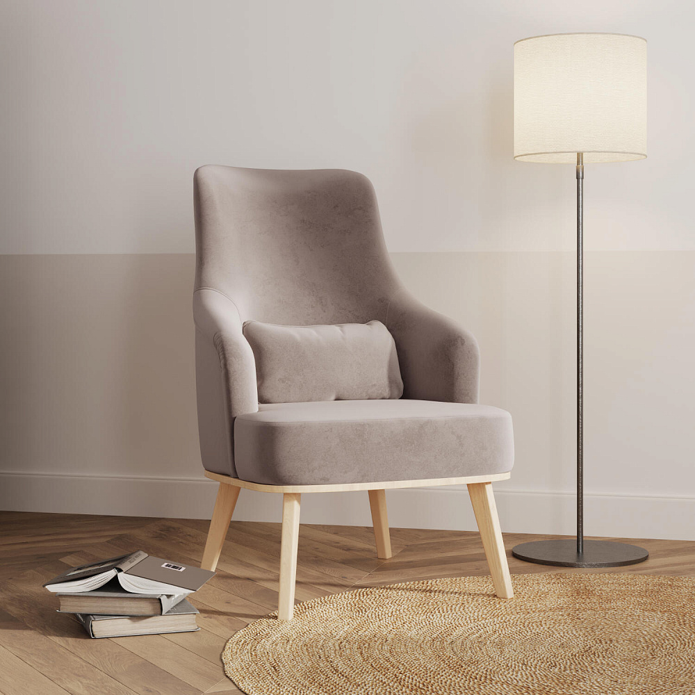 Кресло «Ноа» — минималистичная модель идеально подойдет для создания уютной зоны отдыха. Кресло в скандинавском стиле выделяется высокой спинкой, плавно перетекающей в подлокотники. Лаконичный образ завершает деревянное основание с тонкими опорами. Небольшая декоративная подушка поможет скорректировать глубину посадки для более комфортного отдыха.