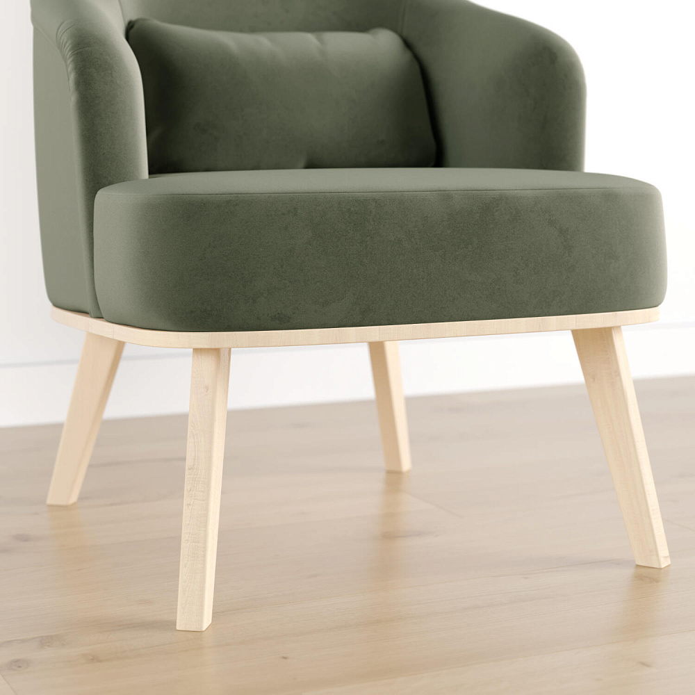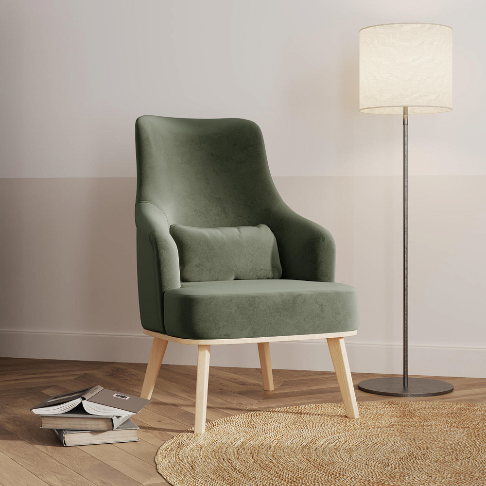 Кресло «Ноа» — минималистичная модель идеально подойдет для создания уютной зоны отдыха. Кресло в скандинавском стиле выделяется высокой спинкой, плавно перетекающей в подлокотники. Лаконичный образ завершает деревянное основание с тонкими опорами. Небольшая декоративная подушка поможет скорректировать глубину посадки для более комфортного отдыха.