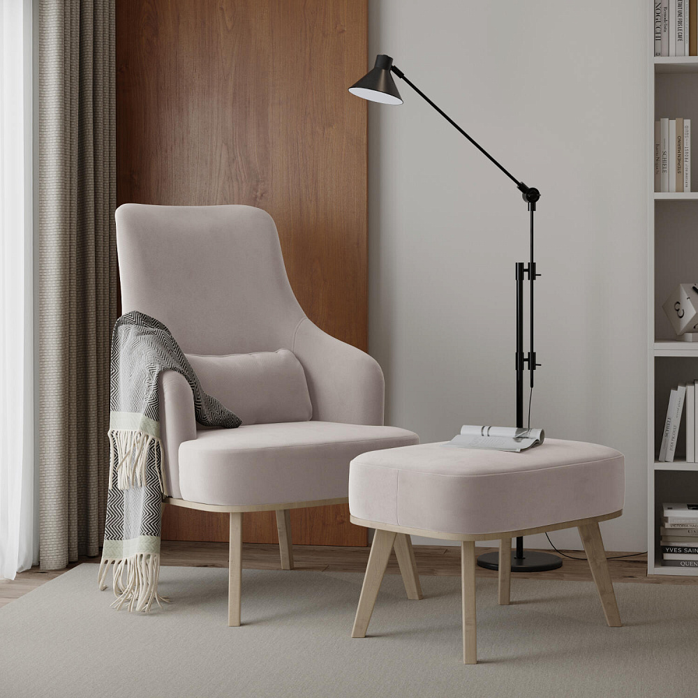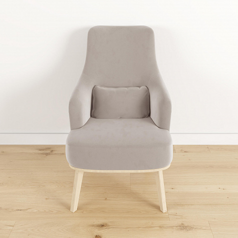 Кресло «Ноа» — минималистичная модель идеально подойдет для создания уютной зоны отдыха. Кресло в скандинавском стиле выделяется высокой спинкой, плавно перетекающей в подлокотники. Лаконичный образ завершает деревянное основание с тонкими опорами. Небольшая декоративная подушка поможет скорректировать глубину посадки для более комфортного отдыха.