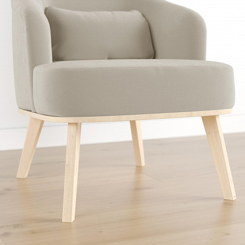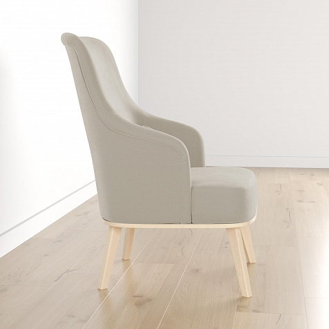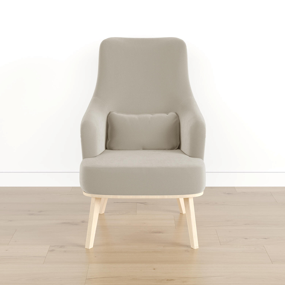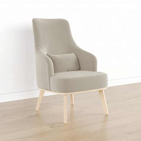 Кресло «Ноа» — минималистичная модель идеально подойдет для создания уютной зоны отдыха. Кресло в скандинавском стиле выделяется высокой спинкой, плавно перетекающей в подлокотники. Лаконичный образ завершает деревянное основание с тонкими опорами. Небольшая декоративная подушка поможет скорректировать глубину посадки для более комфортного отдыха.