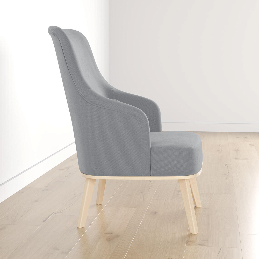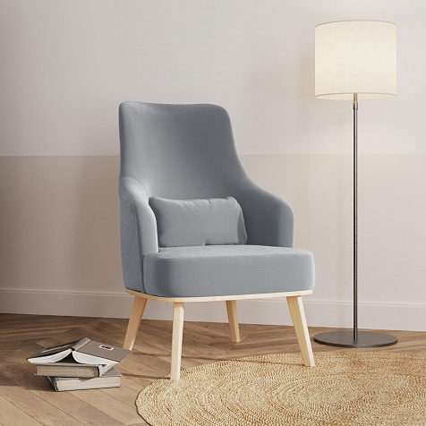 Кресло «Ноа» — минималистичная модель идеально подойдет для создания уютной зоны отдыха. Кресло в скандинавском стиле выделяется высокой спинкой, плавно перетекающей в подлокотники. Лаконичный образ завершает деревянное основание с тонкими опорами. Небольшая декоративная подушка поможет скорректировать глубину посадки для более комфортного отдыха.