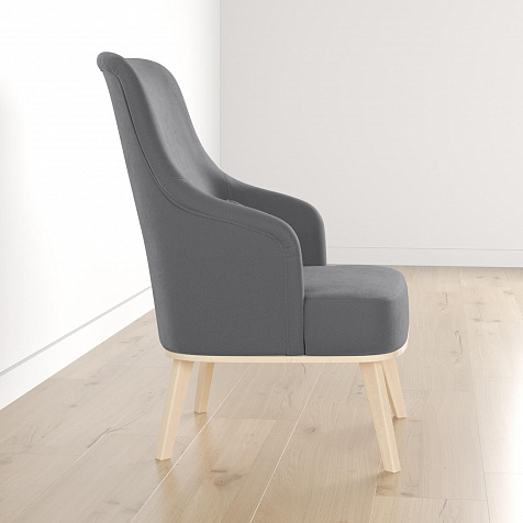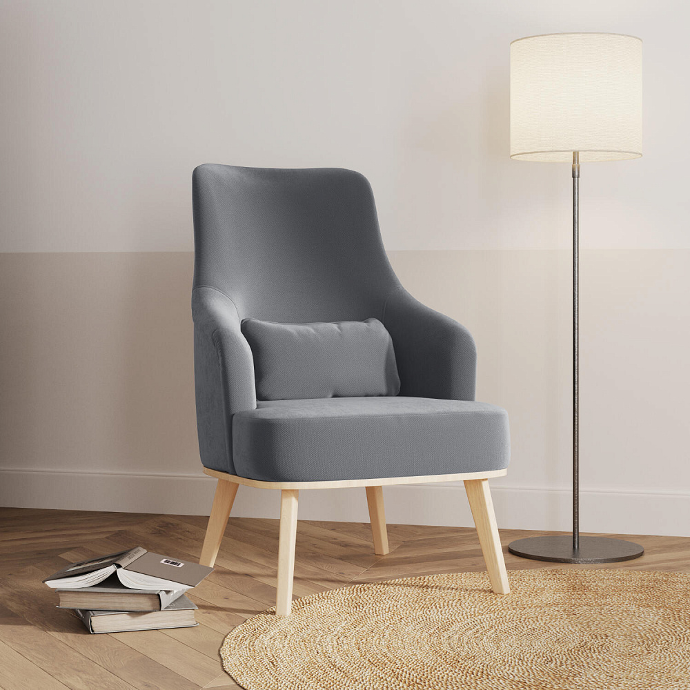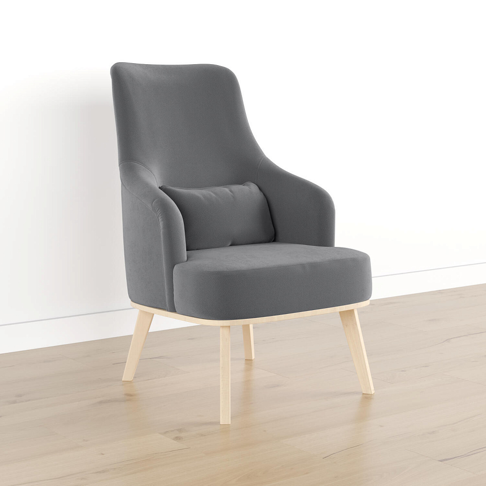 Кресло «Ноа» — минималистичная модель идеально подойдет для создания уютной зоны отдыха. Кресло в скандинавском стиле выделяется высокой спинкой, плавно перетекающей в подлокотники. Лаконичный образ завершает деревянное основание с тонкими опорами. Небольшая декоративная подушка поможет скорректировать глубину посадки для более комфортного отдыха.