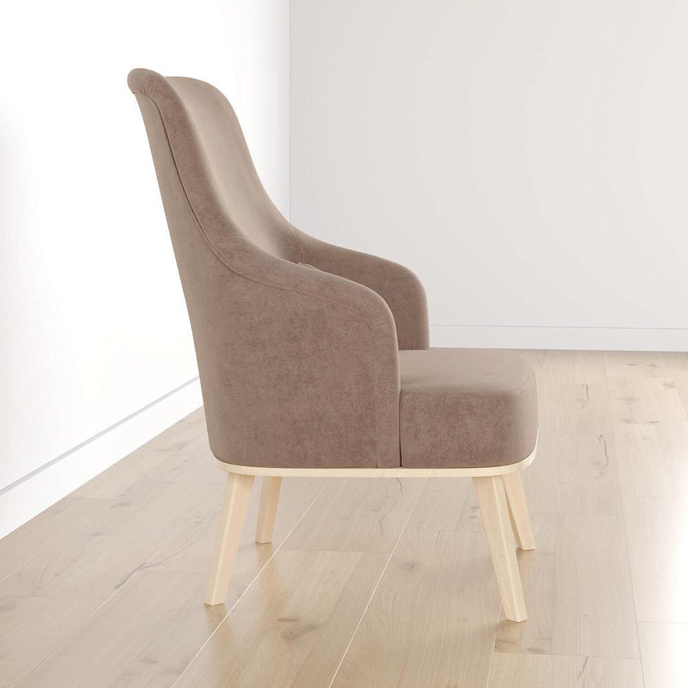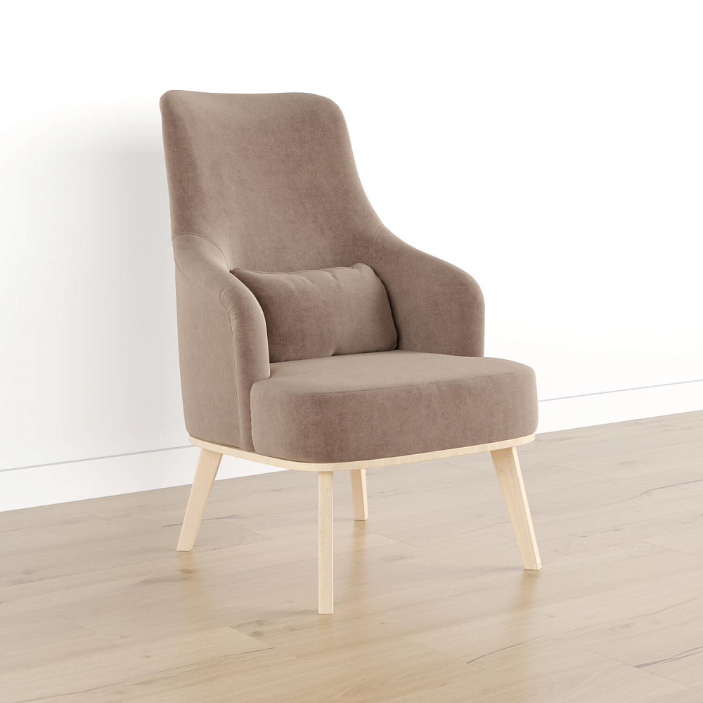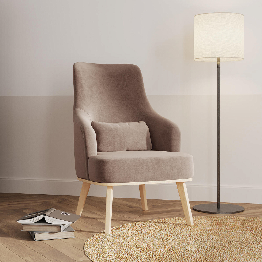 Кресло «Ноа» — минималистичная модель идеально подойдет для создания уютной зоны отдыха. Кресло в скандинавском стиле выделяется высокой спинкой, плавно перетекающей в подлокотники. Лаконичный образ завершает деревянное основание с тонкими опорами. Небольшая декоративная подушка поможет скорректировать глубину посадки для более комфортного отдыха.