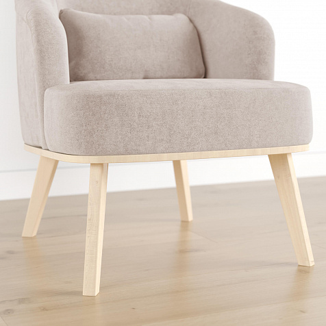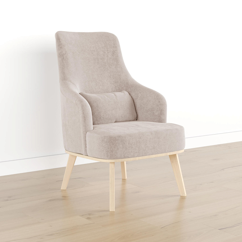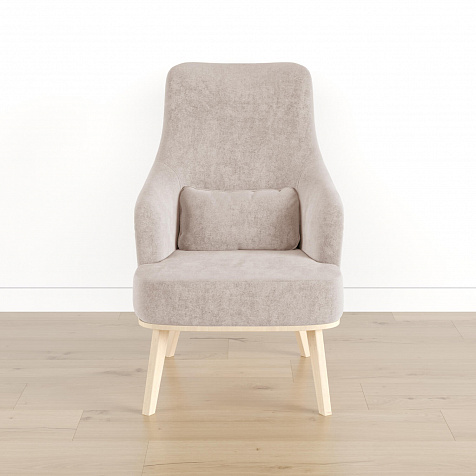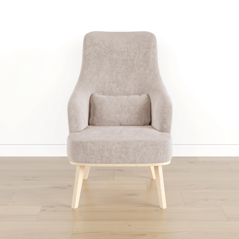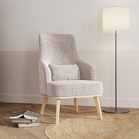 Кресло «Ноа» — минималистичная модель идеально подойдет для создания уютной зоны отдыха. Кресло в скандинавском стиле выделяется высокой спинкой, плавно перетекающей в подлокотники. Лаконичный образ завершает деревянное основание с тонкими опорами. Небольшая декоративная подушка поможет скорректировать глубину посадки для более комфортного отдыха.