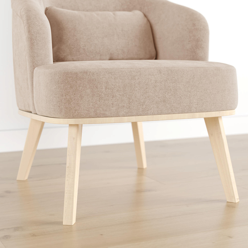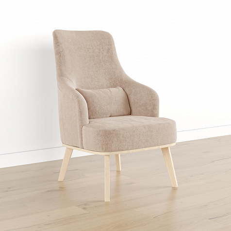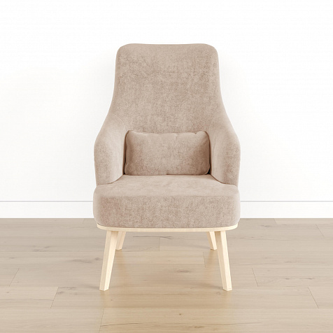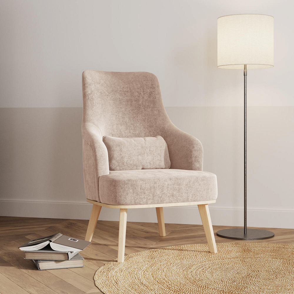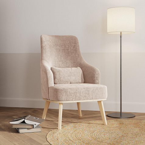 Кресло «Ноа» — минималистичная модель идеально подойдет для создания уютной зоны отдыха. Кресло в скандинавском стиле выделяется высокой спинкой, плавно перетекающей в подлокотники. Лаконичный образ завершает деревянное основание с тонкими опорами. Небольшая декоративная подушка поможет скорректировать глубину посадки для более комфортного отдыха.