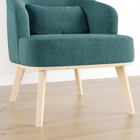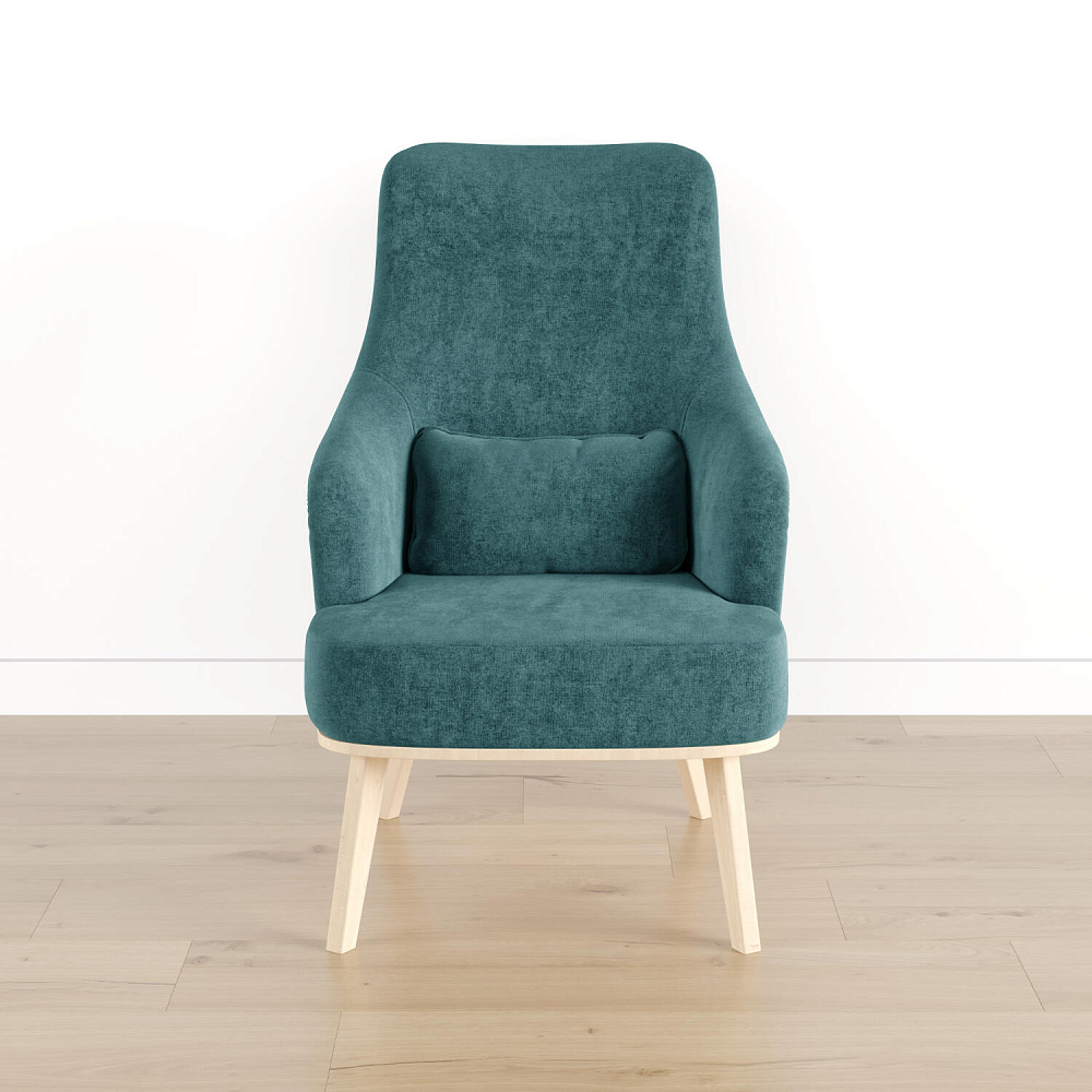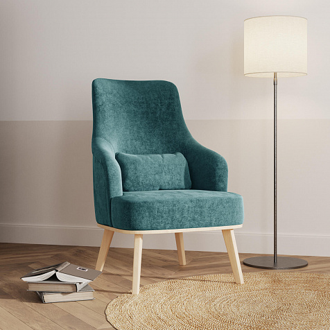 Кресло «Ноа» — минималистичная модель идеально подойдет для создания уютной зоны отдыха. Кресло в скандинавском стиле выделяется высокой спинкой, плавно перетекающей в подлокотники. Лаконичный образ завершает деревянное основание с тонкими опорами. Небольшая декоративная подушка поможет скорректировать глубину посадки для более комфортного отдыха.