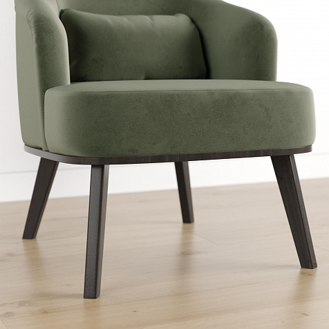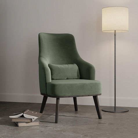 Кресло «Ноа» — минималистичная модель идеально подойдет для создания уютной зоны отдыха. Кресло в скандинавском стиле выделяется высокой спинкой, плавно перетекающей в подлокотники. Лаконичный образ завершает деревянное основание с тонкими опорами. Небольшая декоративная подушка поможет скорректировать глубину посадки для более комфортного отдыха.