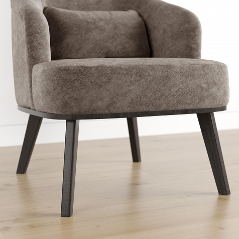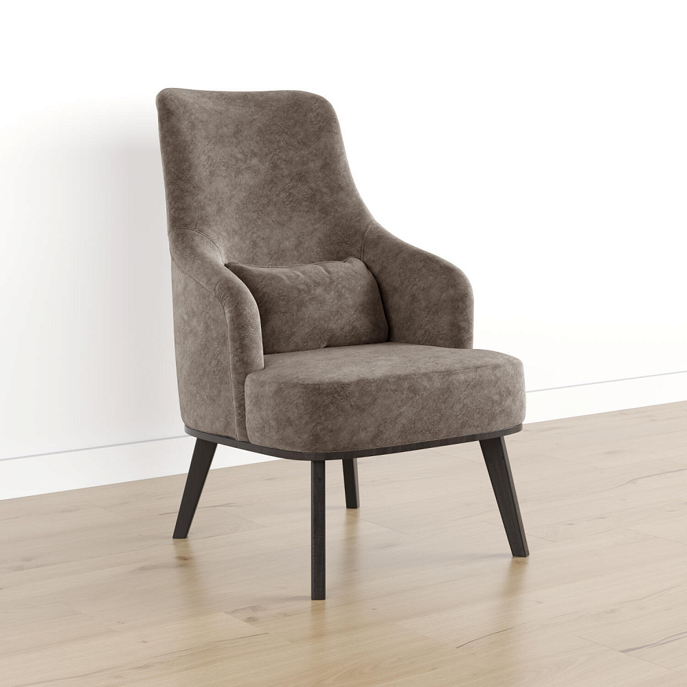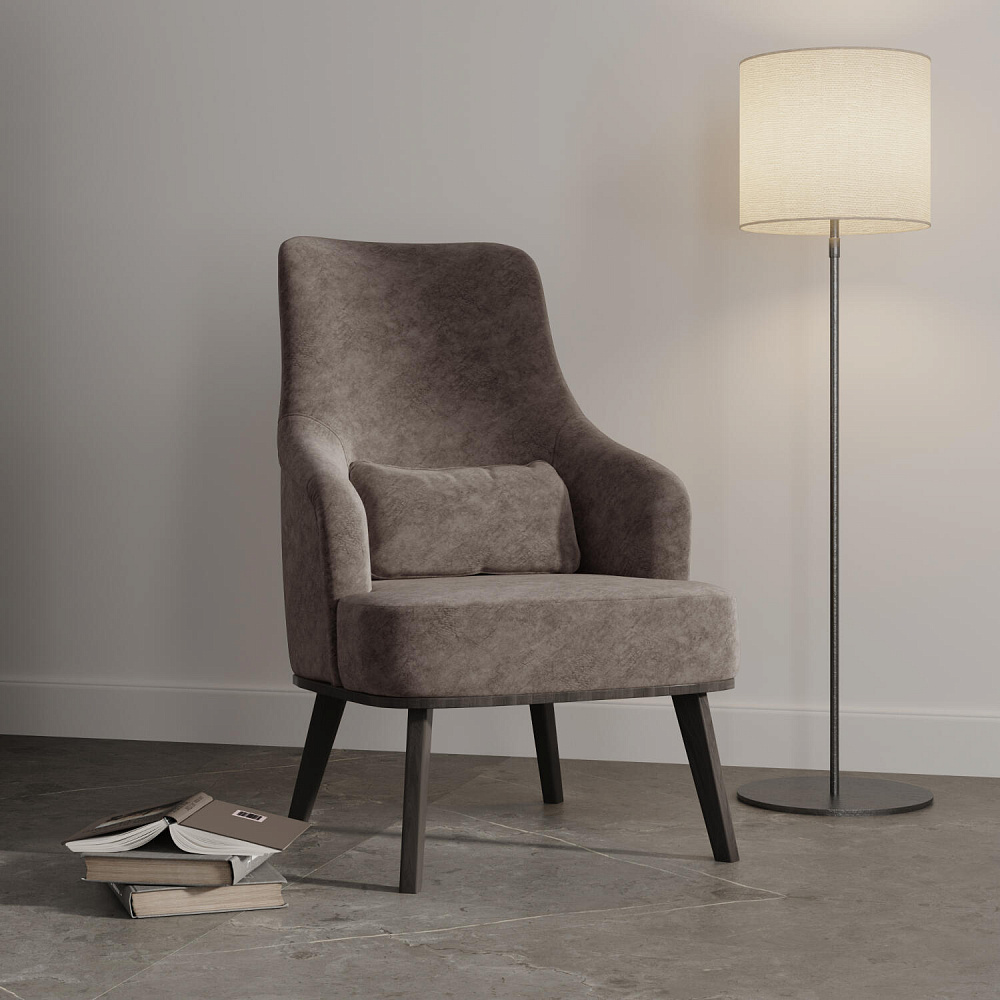 Кресло «Ноа» — минималистичная модель идеально подойдет для создания уютной зоны отдыха. Кресло в скандинавском стиле выделяется высокой спинкой, плавно перетекающей в подлокотники. Лаконичный образ завершает деревянное основание с тонкими опорами. Небольшая декоративная подушка поможет скорректировать глубину посадки для более комфортного отдыха.