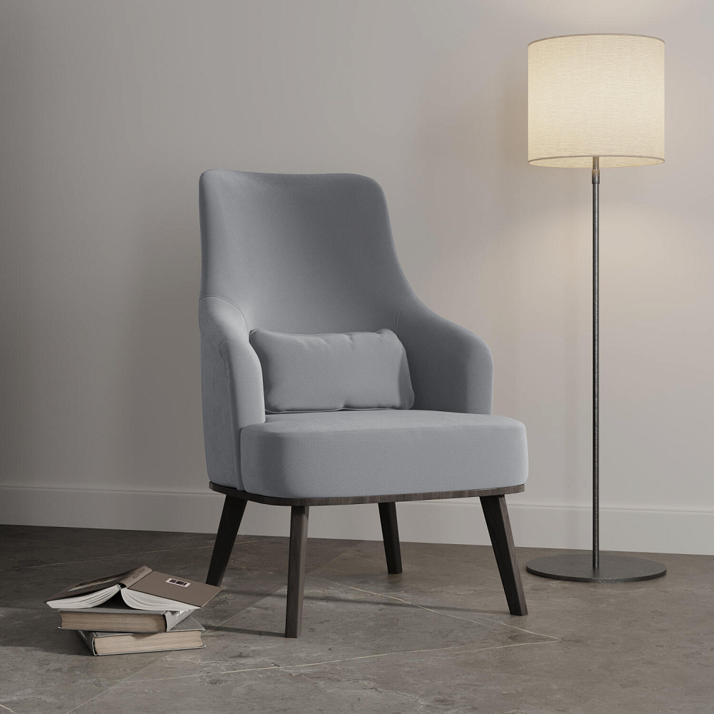 Кресло «Ноа» — минималистичная модель идеально подойдет для создания уютной зоны отдыха. Кресло в скандинавском стиле выделяется высокой спинкой, плавно перетекающей в подлокотники. Лаконичный образ завершает деревянное основание с тонкими опорами. Небольшая декоративная подушка поможет скорректировать глубину посадки для более комфортного отдыха.